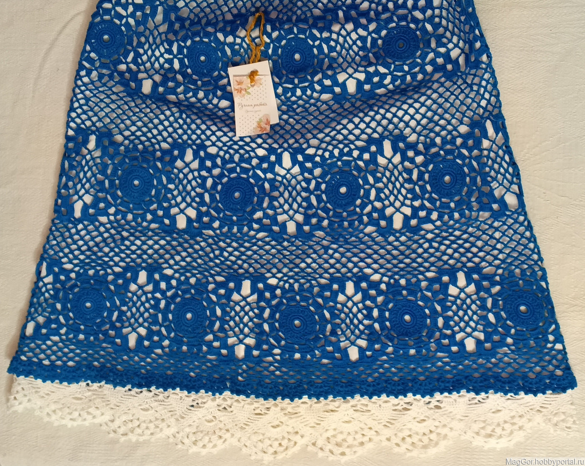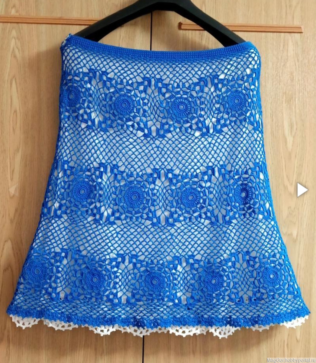 ажурная юбка, летняя юбка, Синяя юбка, юбка с подкладкой