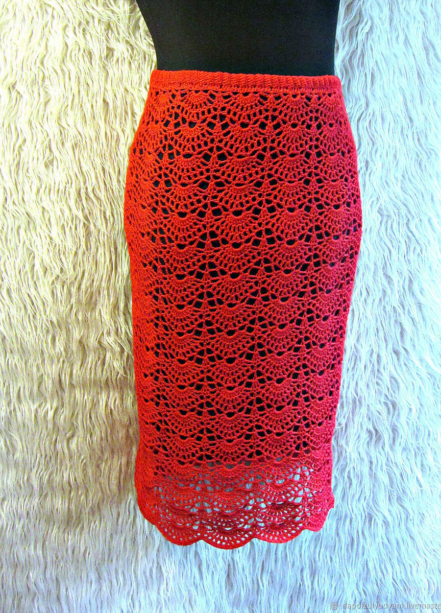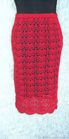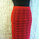 ярко-красный, юбка, юбка летняя, ажурная юбка, юбка миди, юбка вязаная крючком, юбка ажурная, юбка из хлопка, вязаная юбка крючком, юбка ниже колен, юбка до колен, красная вязаная юбка, ажурная вязаная юбка