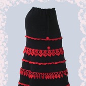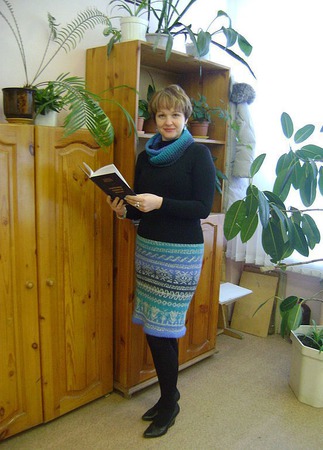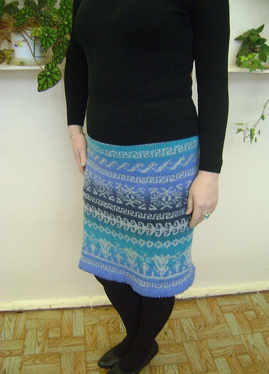 Юбка связана на спицах из пряжи Кауни в технике жаккардового вязания без протяжек. Основная пряжа шерсть 100%. Жаккард из пряжи 50% мириноса, 50% акрила. Возможно жаккард - кауни.