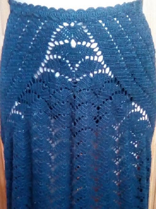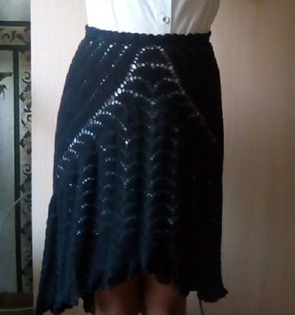 Вязаная крючком, ажурная, черная юбка. Из 100 % мерсеризованного хлопка (Ирис). Данную юбку можно носить в двух вариантах. Удлиненный низ и укороченный верх, либо удлиненная боковая часть. Данная модель является авторской работой. Юбка связана без единого шва в круговую,