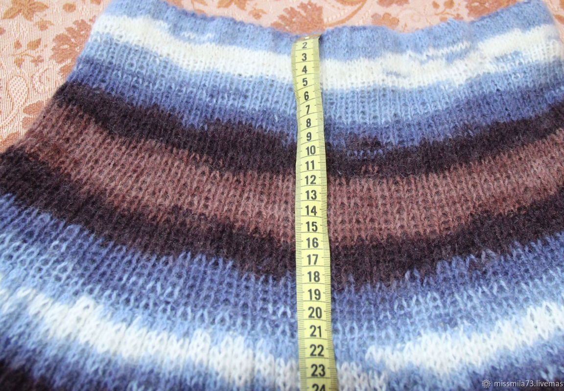 Вязаная спицами юбка с эффектом плиссе выполнена без швов, по кругу, из пряжи "Ализе Ангора Реал 40", необычайно теплая и мягкая пряжа. Общая длина юбки 73см. Пояс двойной, на резинке.