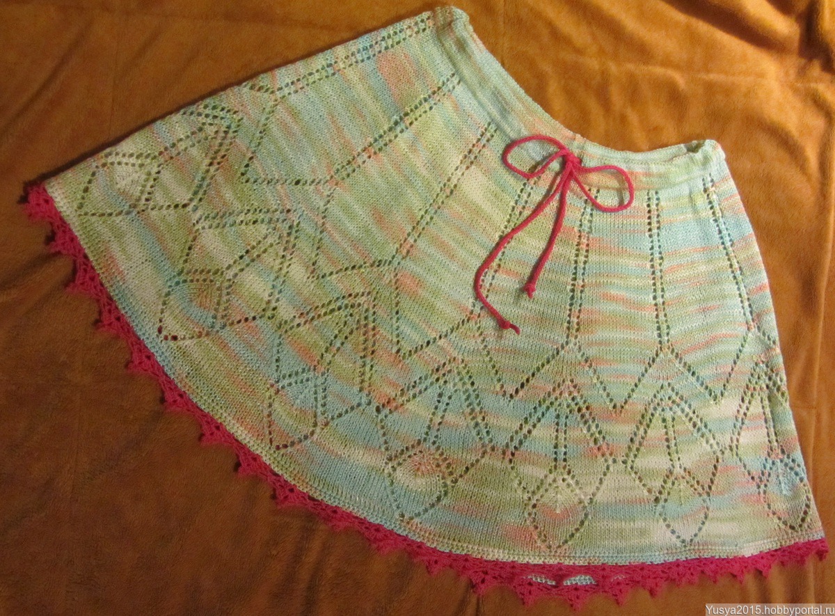 для девочки, спицами, юбка, юбка вязаная, для девочек, юбка летняя, юбка полусолнце