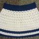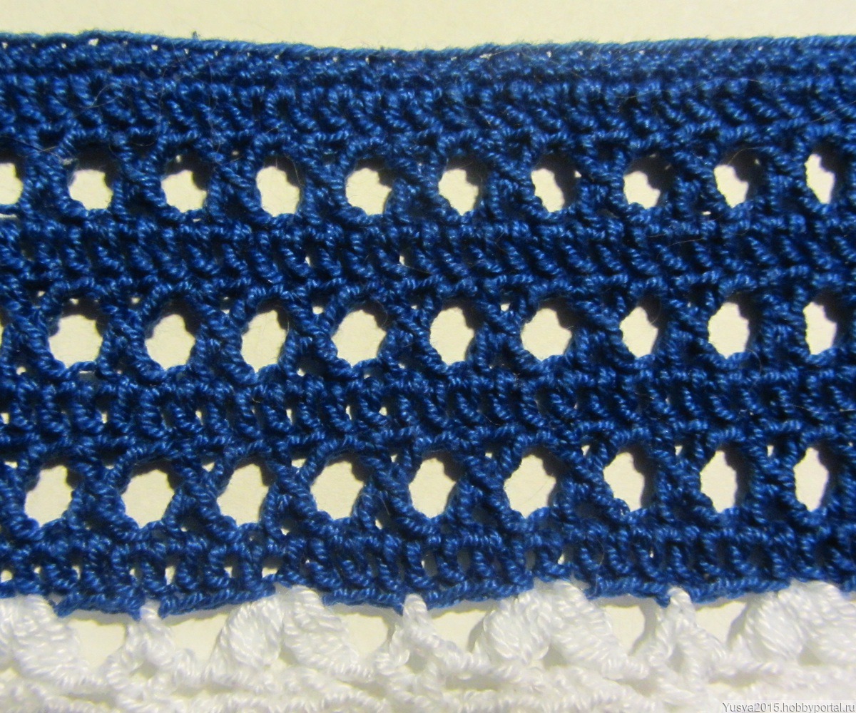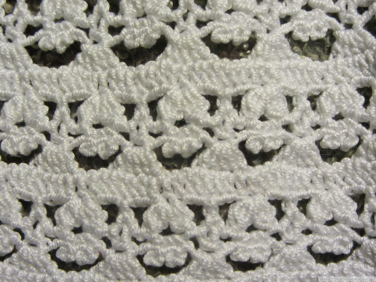 Ручная работа, крючок, цвета - беленький и синий. Легкая и воздушная моделька приятная к телу, швов нет, длина 27 см., ОБ - 57(58) см., ажурный узор, ажурный пояс с 3-мя уровнями под ленточку, возможна глажка. Отличная моделька на лето.