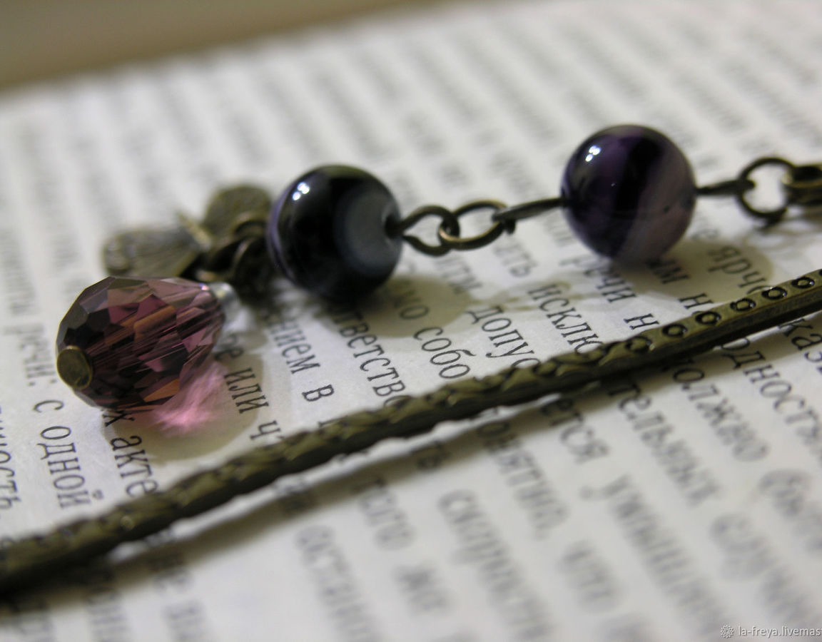Фиолетовые бусины агата и виноградная стеклянная капелька.