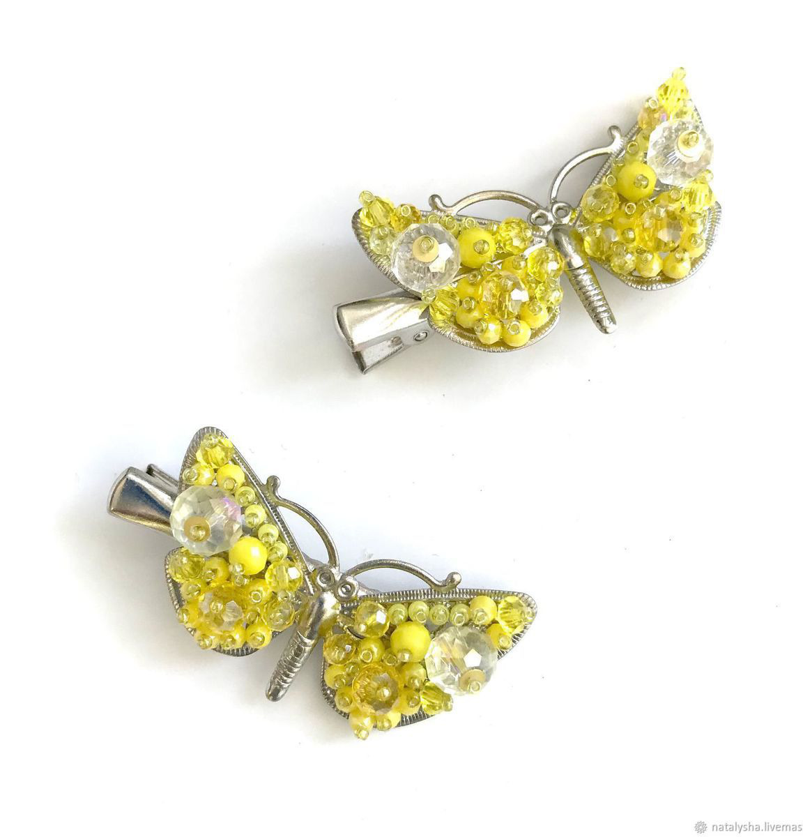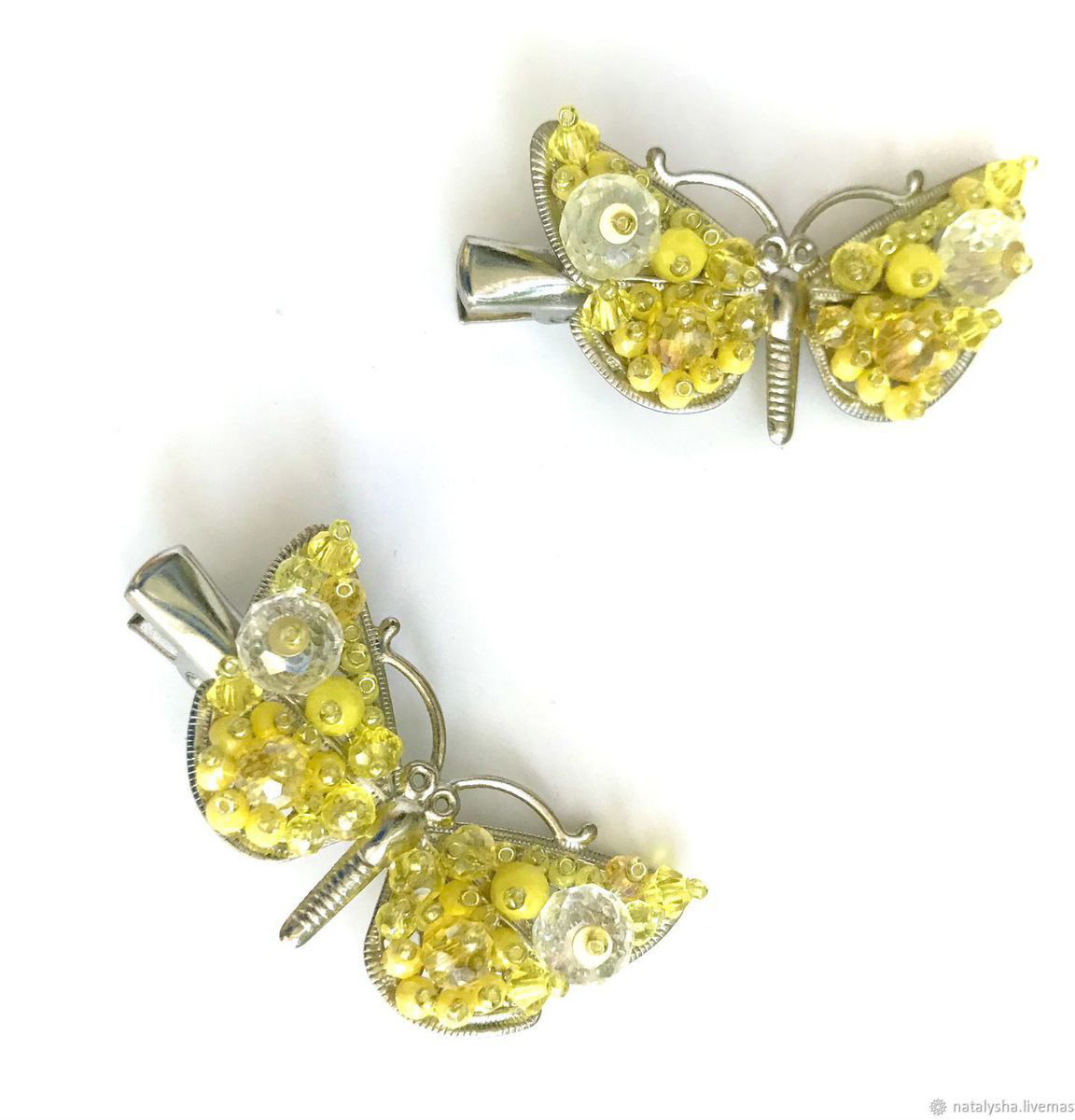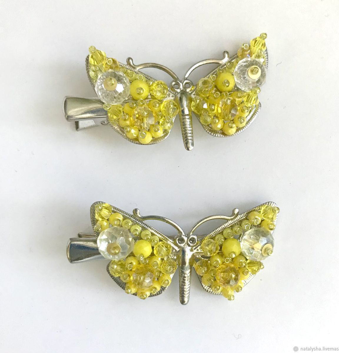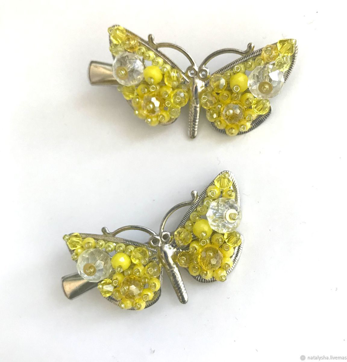 В наличии две практически одинаковых заколки-бабочки, которые можно рассматривать как равноценную пару. Различия есть, но незначительные.