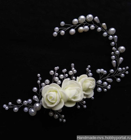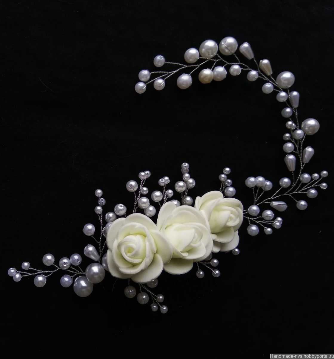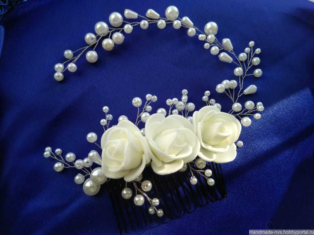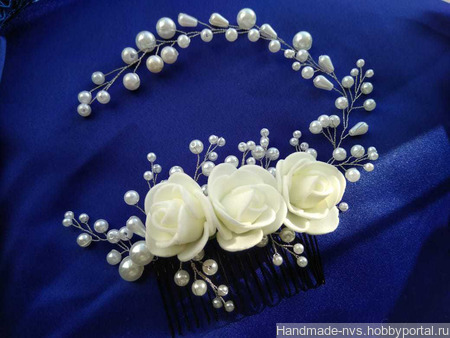 заколка с цветами, гребень для невесты, гребень для прически, гребень для волос, гребень с розами, гребень с цветами, гребень, гребень в волосы, гребень свадебный, Гребень ручной работы