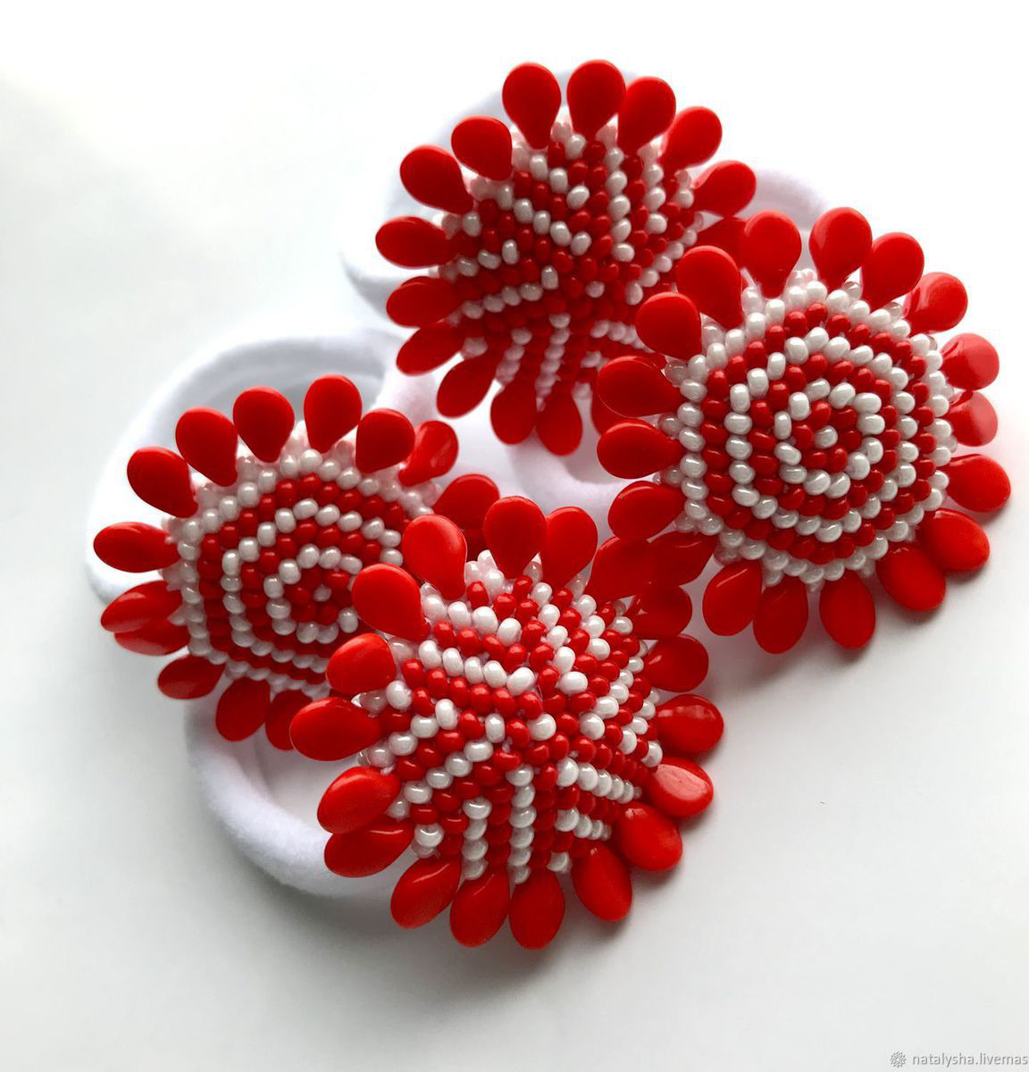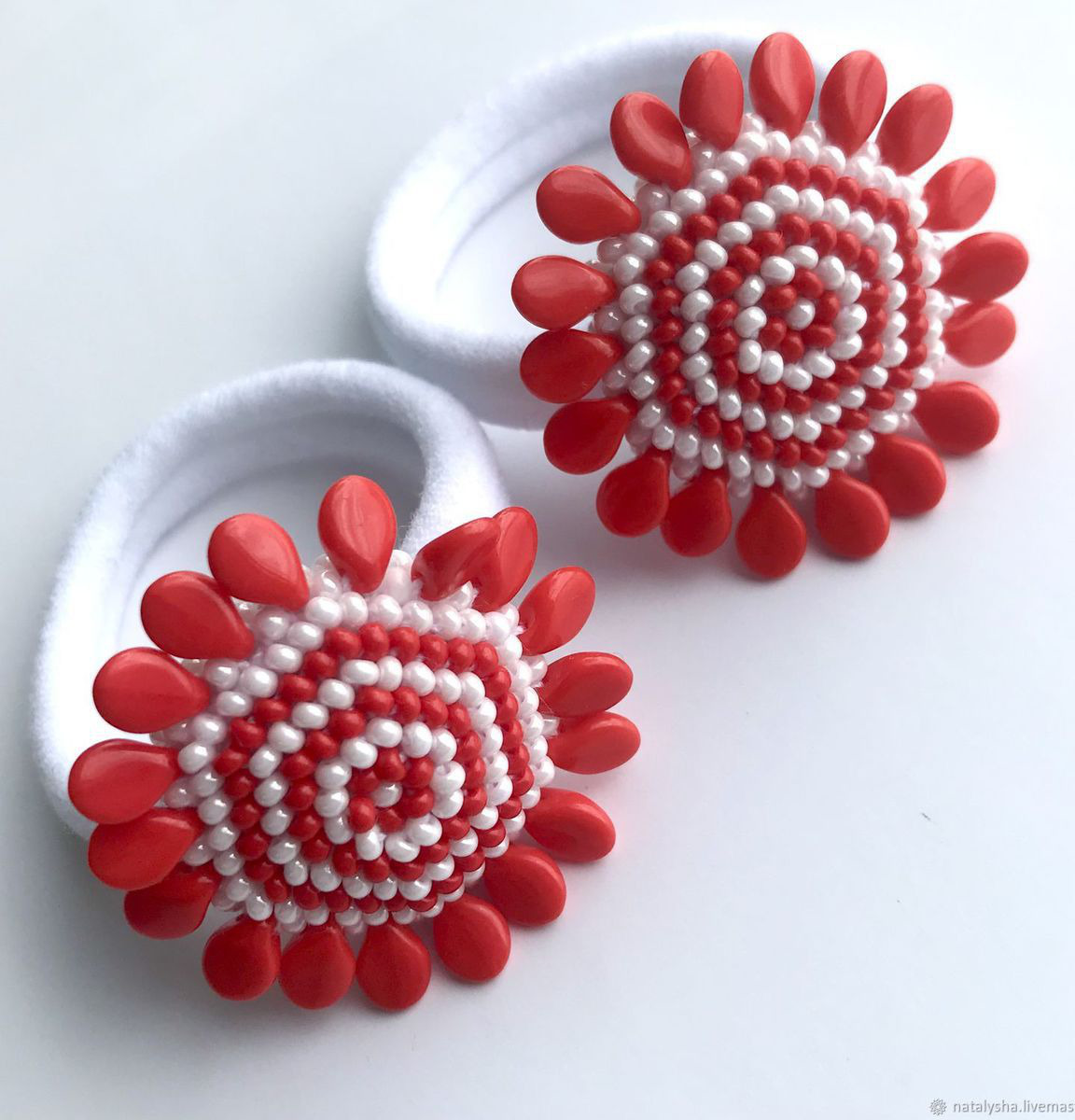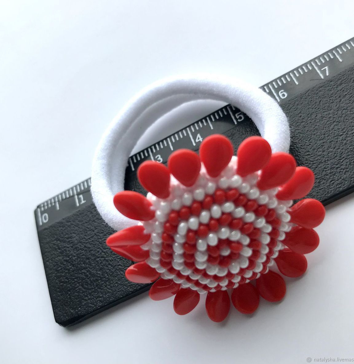 резиночки для волос, резиночки для девочек, резинка для волос, заколка для девочки, подарок себе любимой, резинка с цветком, заколка с цветком, красно-белый, подарок сестре дочери, нарядная заколка, красивая резиночка для волос, резинка для школы, подарок девушке подруге коллеге, Резинка для волос купить