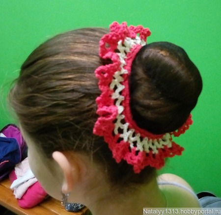 великолепно смотрится на пучке. Подходит для девочек, которые занимаются танцами, хореографией и балетом. Очень красивое и удобное украшение.