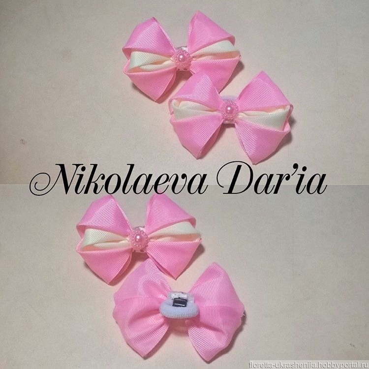 розовый, мятный, репсовая лента, канзаши ручная работа, бантики ручной работы