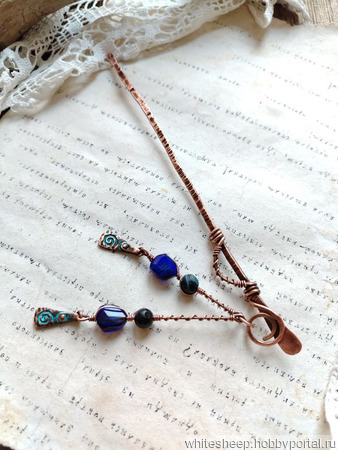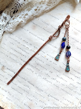 Медная шпилька для волос с подвесками станет украшением для любого случая.