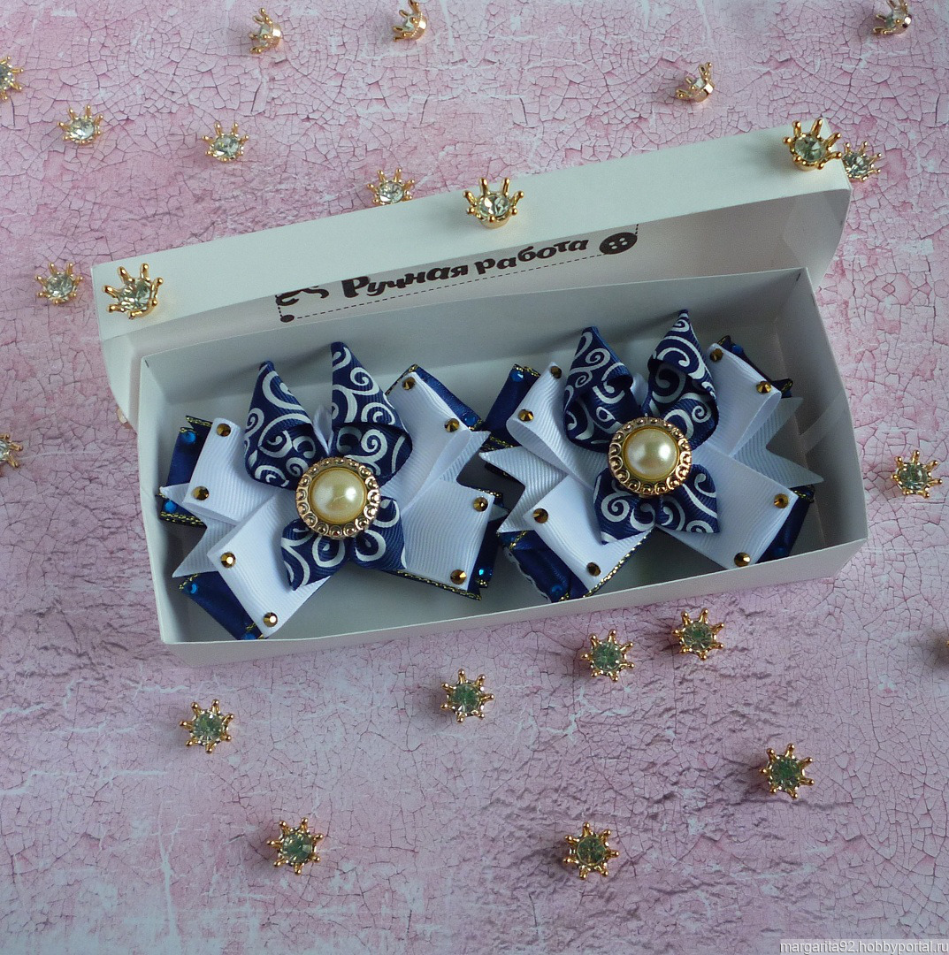 Резинки для школьниц, выполнены из атласных, репсовых лент, украшены кабошоном и стразами
