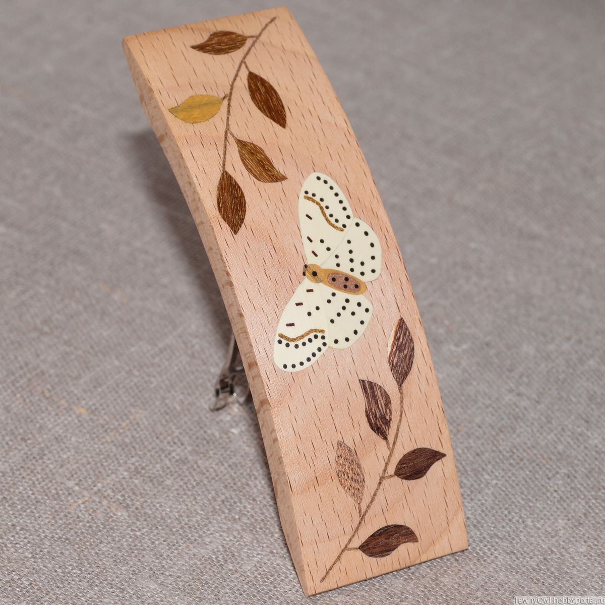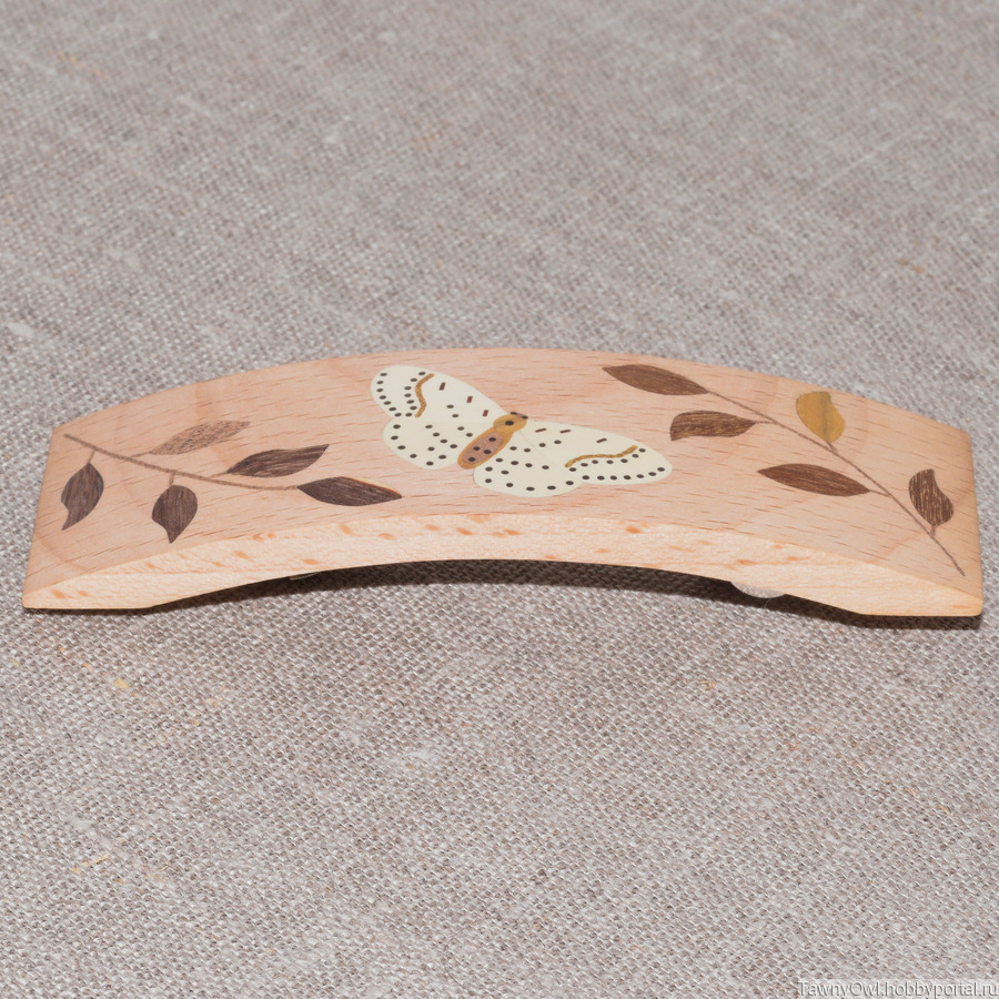 заколка-автомат, заколка для волос, интарсия, инкрустация, инкрустация по дереву