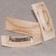 Заколки выполнены из вяза. Размер зажима 8 см. Зажим закреплен на заколках двумя деревянными вставками и дополнительно приклеен. Размеры заколок немного различаются: 108х(33-39)х19 мм. Поверхность отшлифована до 800 зернистости абразива, покрыта воском и отполирована.