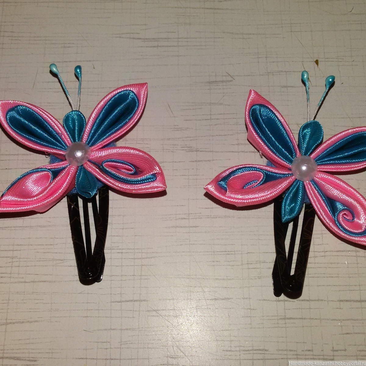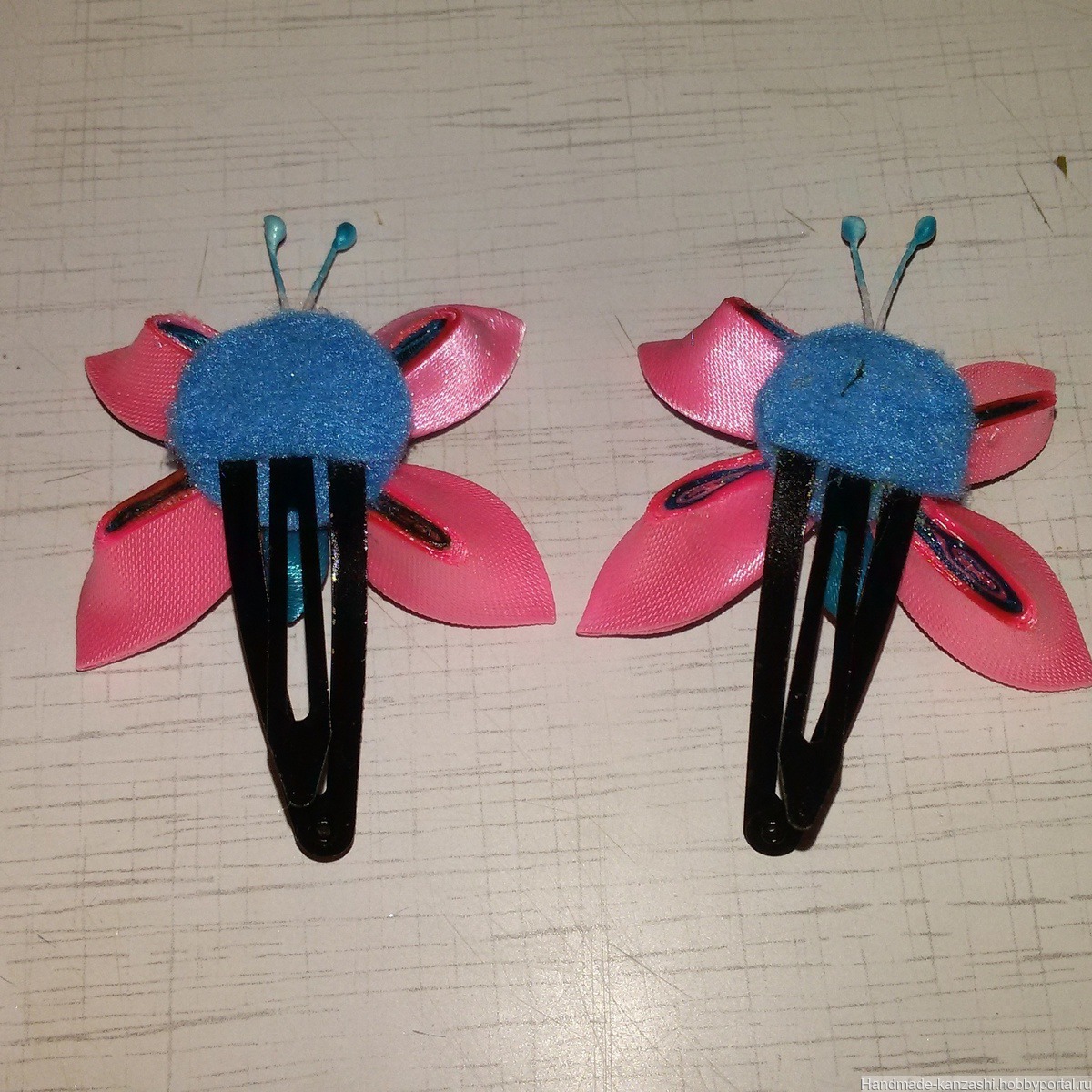 Заколка клик - клак ' бабочка ' ручной работы в технике канзаши .