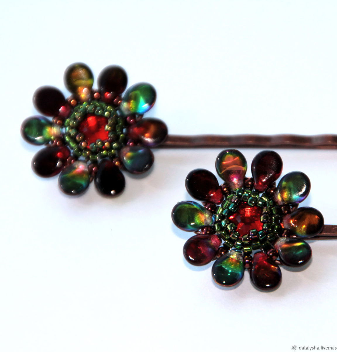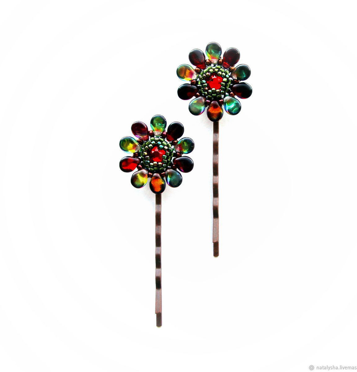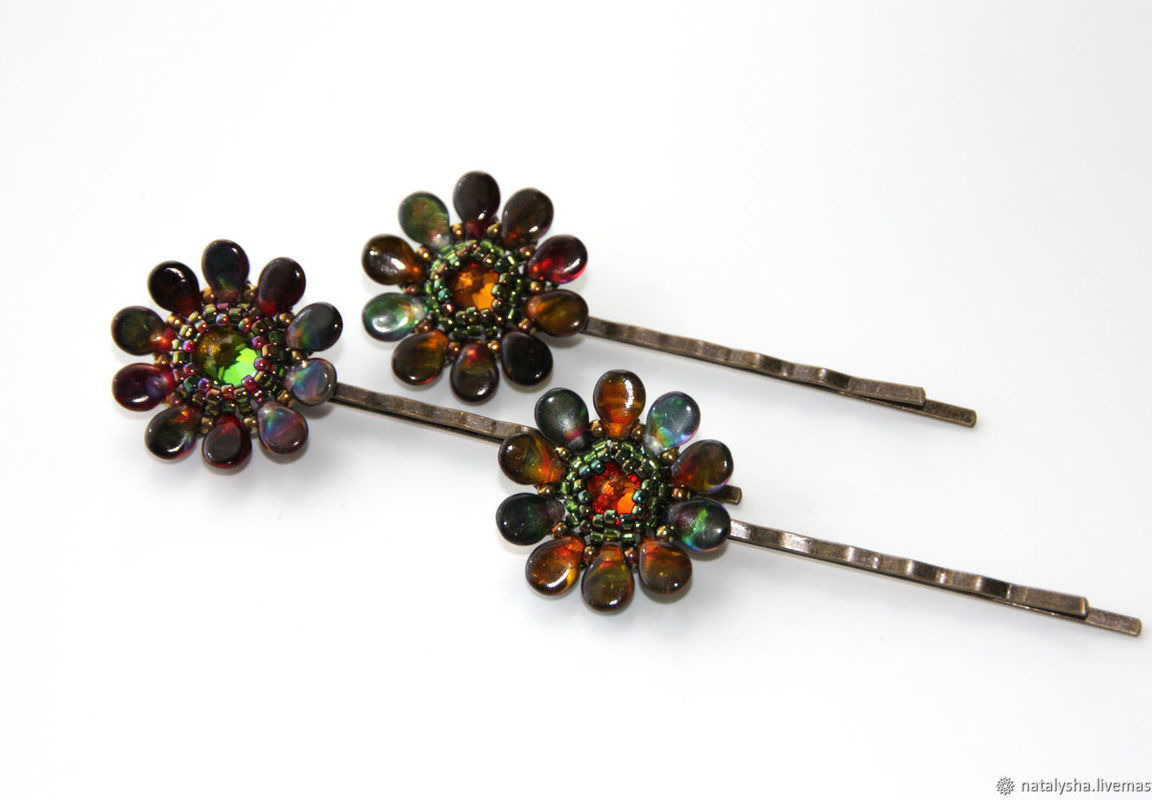 зелёный, заколка, красный, подарок девушке, подарок подруге, коричневый, рыжий, бронзовый, выпускной, заколка для девочки, заколка для волос, аксессуары для волос, заколка с цветком, невидимка, градиент, медный, заколка из бисера, заколка со сваровски, купить заколку для волос, заколка купить