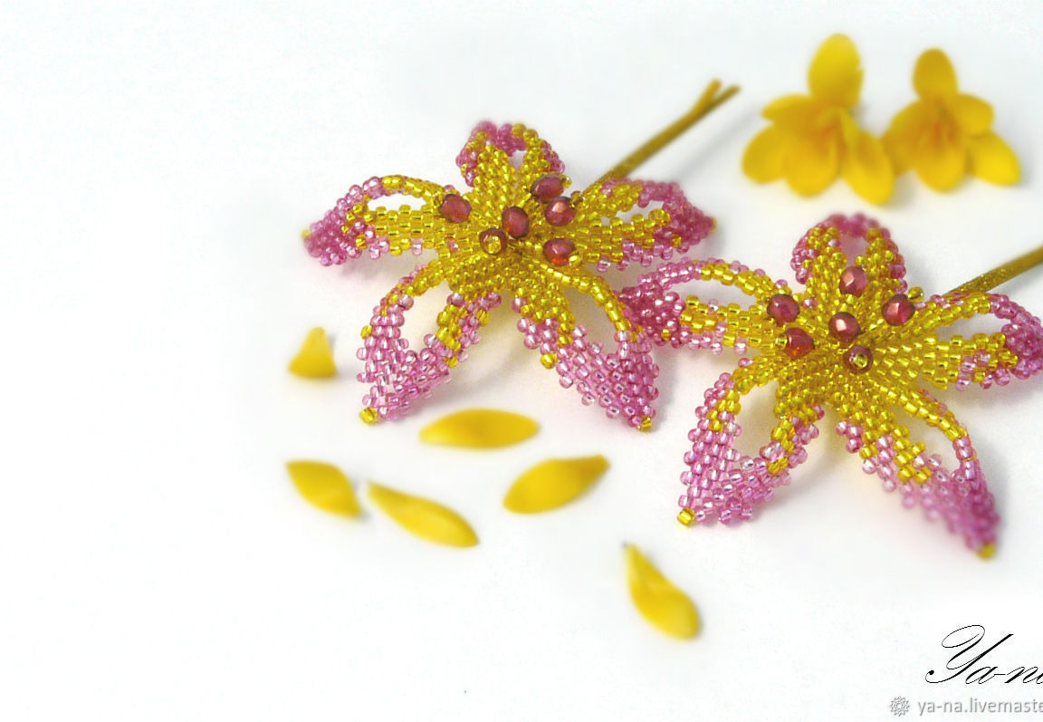 Интересные цветочки из японского бисера для заколок-невидимок красиво украсят вашу прическу или прическу вашей дочери.