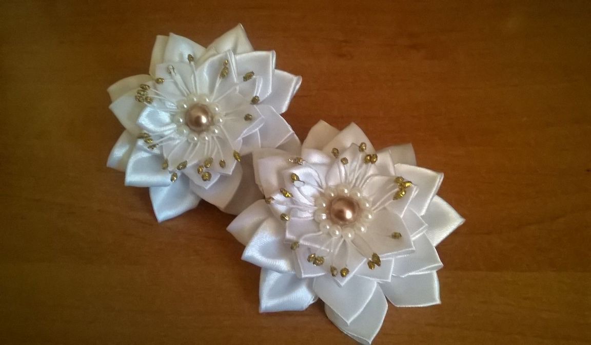 Пышные банты ручной работы из атласных лент и полубусин отлично подойдут как к школьной форме так и к любому праздничному наряду.