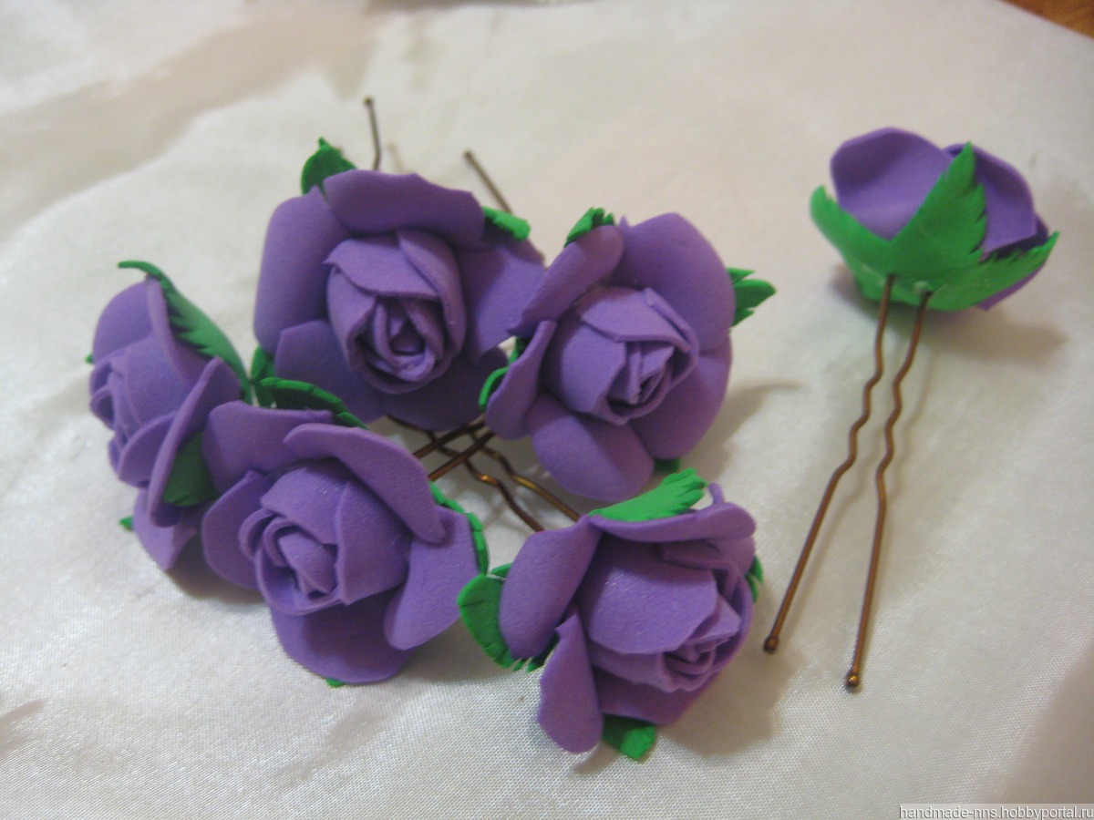 Шпильки выполнены из фоамирана, очень красиво смотрятся в волосах. По желанию можно сделать любой цвет.