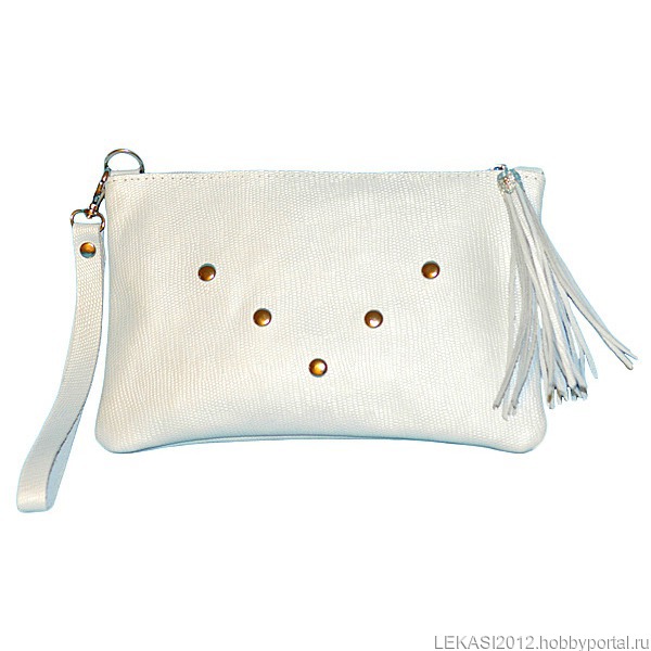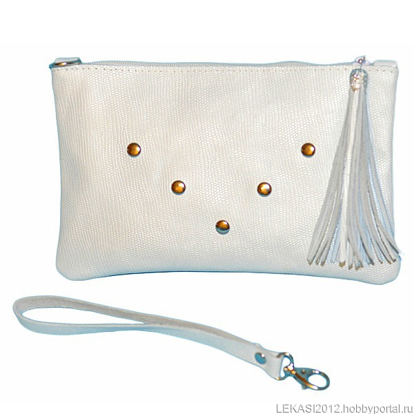 Застегивается на молнию с кожаной кистью длиной 12.5 см.