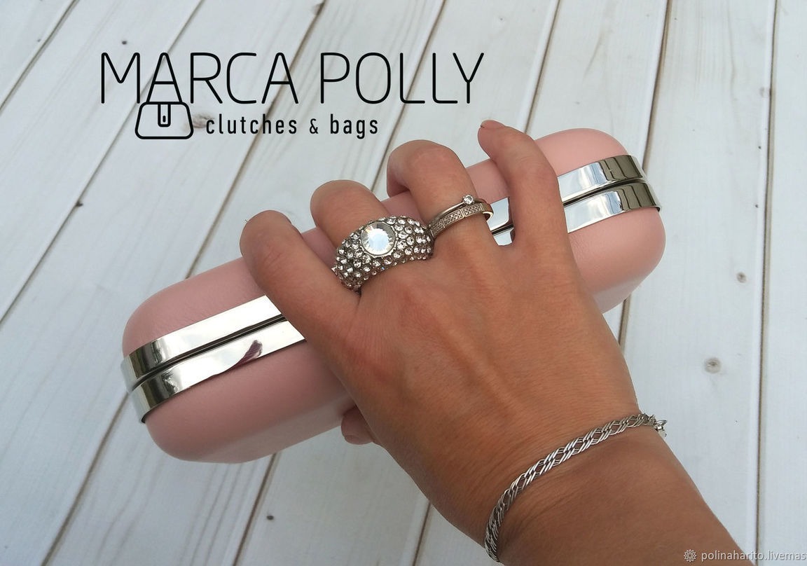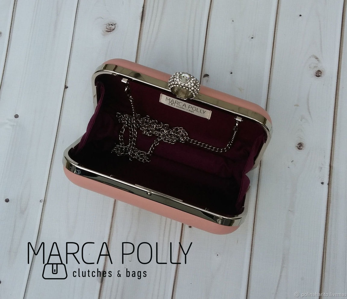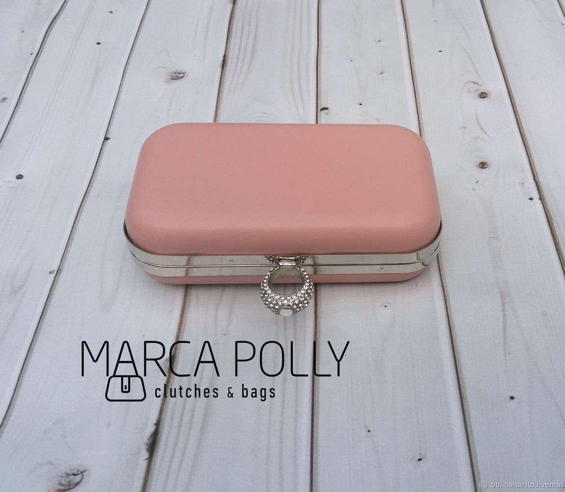 Клатч обтянутый натуральной итальянской кожей пудрово-розового оттенка. Подклад выполнен из 100 % американского хлопка в контраст сливового цвета. Изящная застежка в виде колечка помогает носить клатч в руке. Также в комплекте цепочка длинной 120 см.