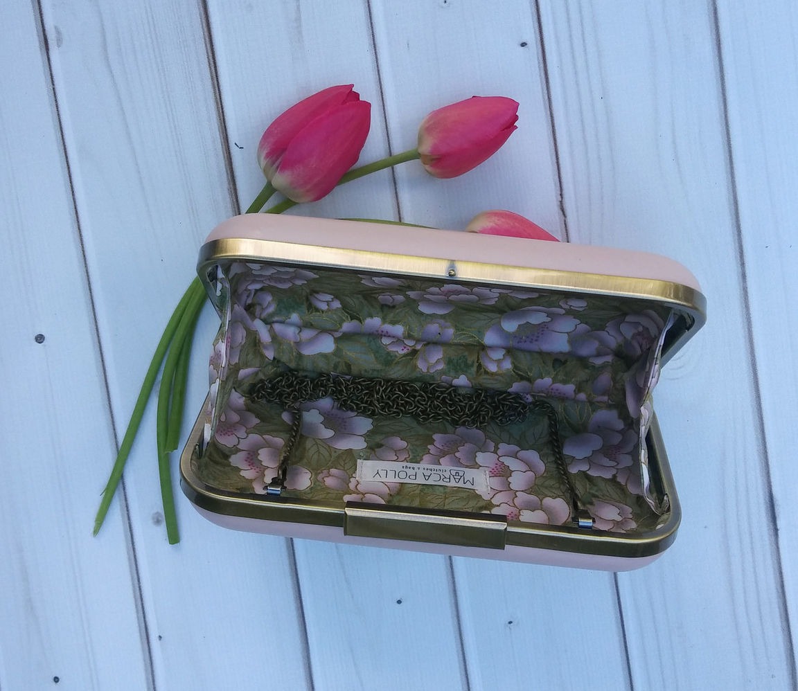 Истинным символом вечной молодости, невинности в комбинации с романтизмом и легкой ноткой винтажности являют собой пудровые оттенки. Предлагаю Вашему вниманию клатч обтянутый натуральной кожей пудрового розового цвета с легкой ноткой серого. Клатч оформлен в под бронзу. Также в комплекте длинная цепочка, при помощи которой легко носить клатч на плече.