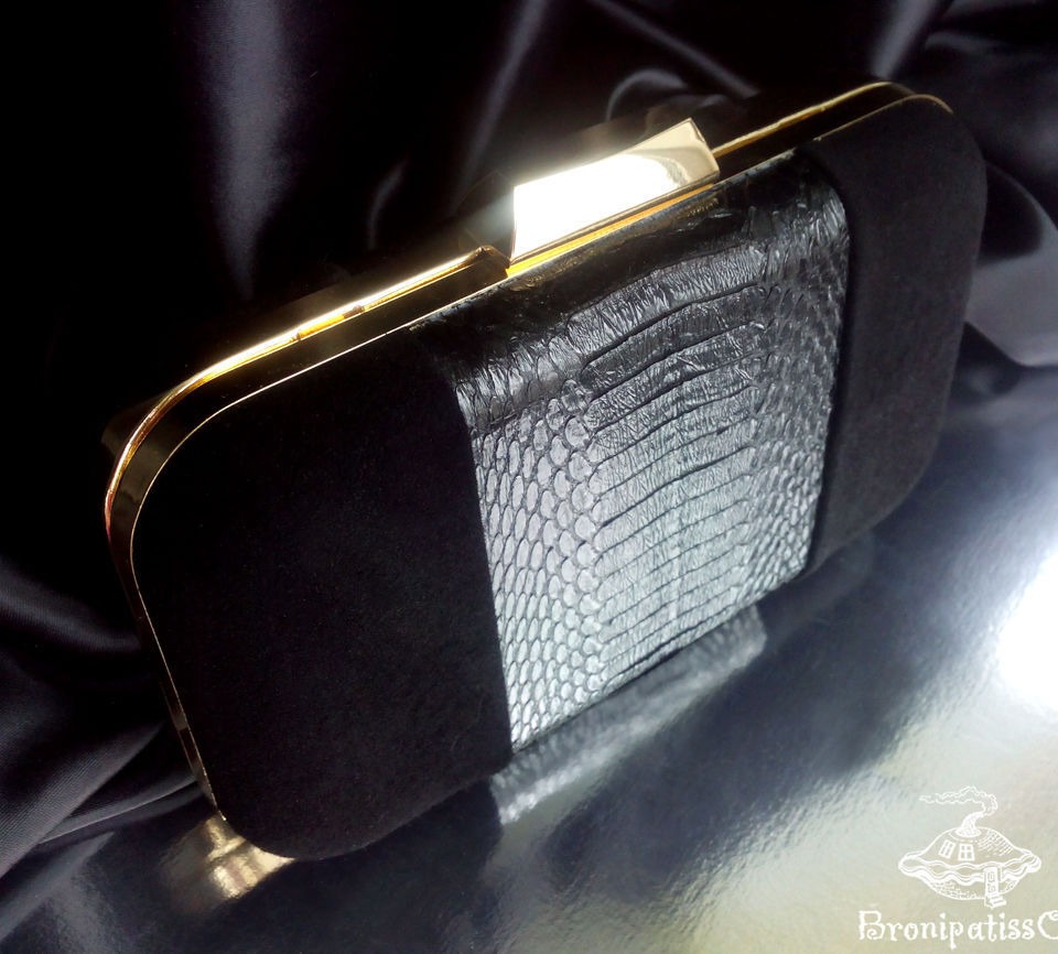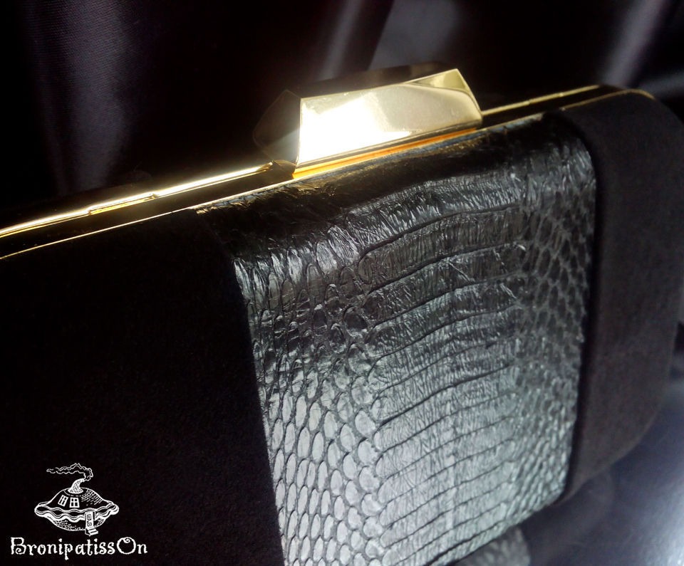 Эксклюзивный клатч ручной работы, выполнен из натуральной замши с использованием металлической фурнитуры. Центральная часть клатча выполнена из натуральной кожи змеи.