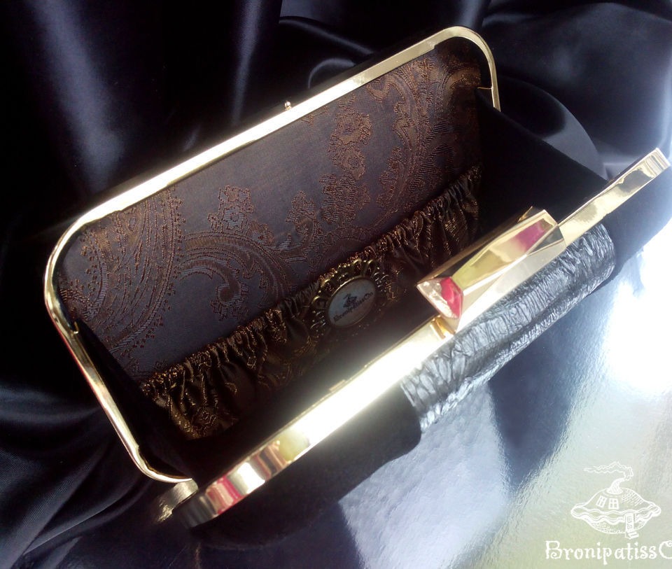 Внутри клатча - атласная подкладка с кармашком и фирменной эмблемой бренда BronipatissOn, боковые ограничители и отделка из натуральной замши.
