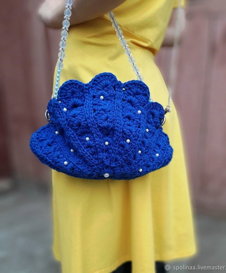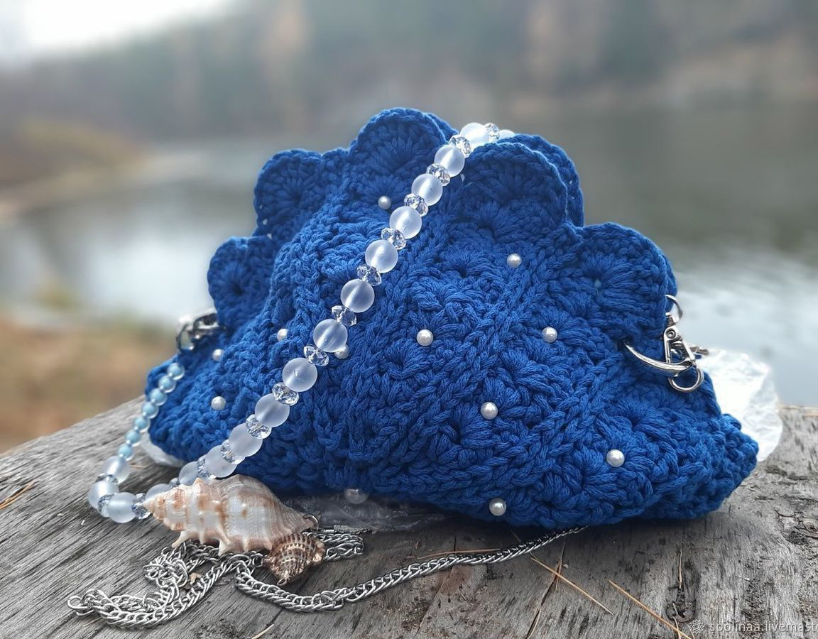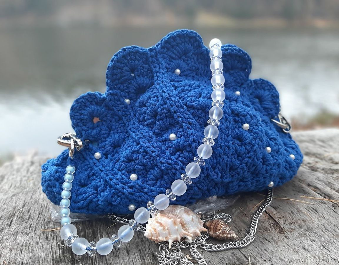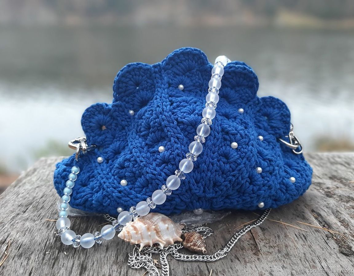 сумочка, сумка женская, сумка для прогулок, сумочка на цепочке, сумочка в подарок, сумочка через плечо, сумочка вязаная, ракушка натуральная, Ракушка подушка