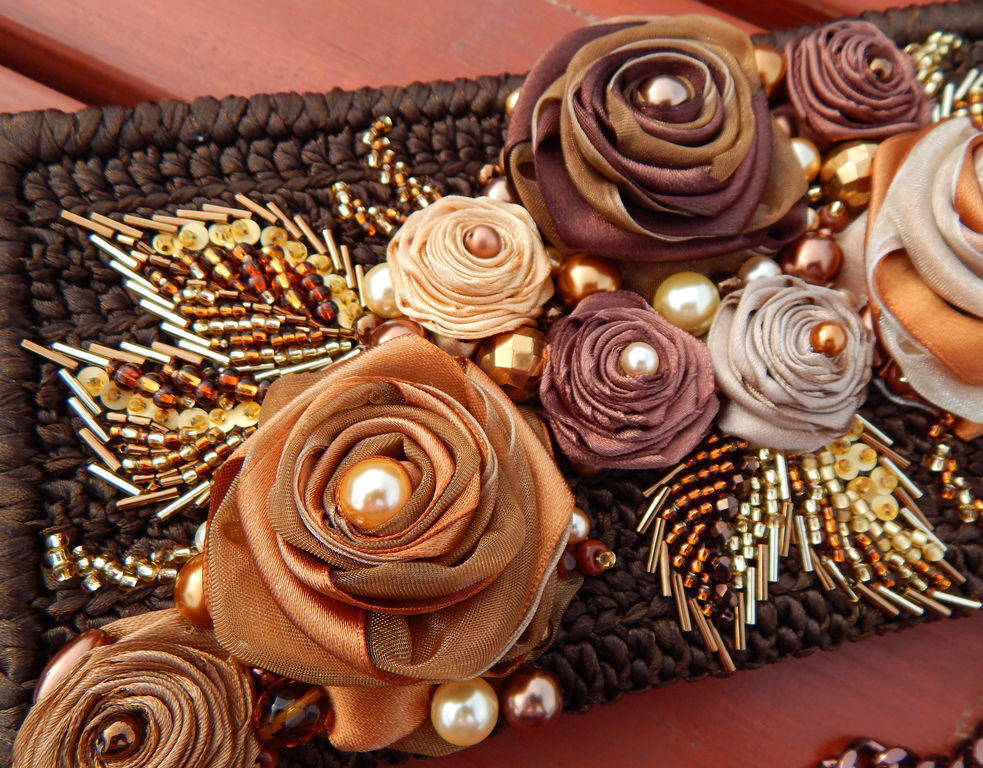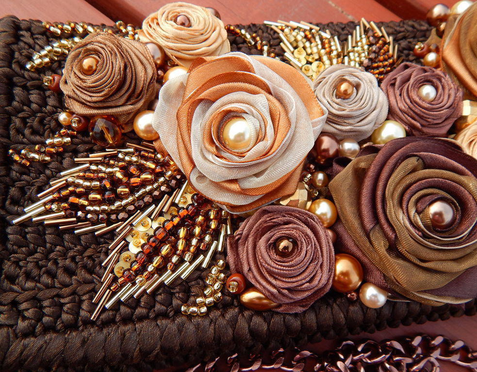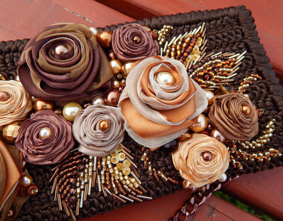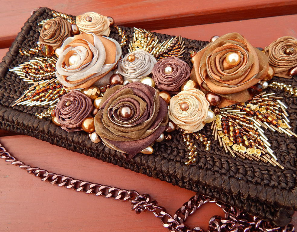 сумочка, на заказ, клатч, купить в подарок, нарядная сумочка, купить клатч, коричневый клатч, сумочка из атласных лент, Ирина Шубина, сумочка на выход