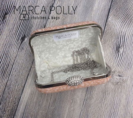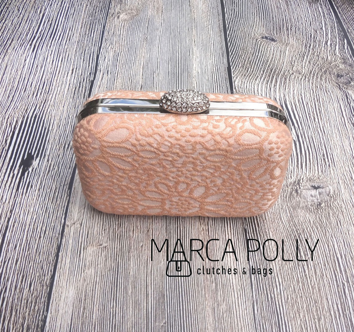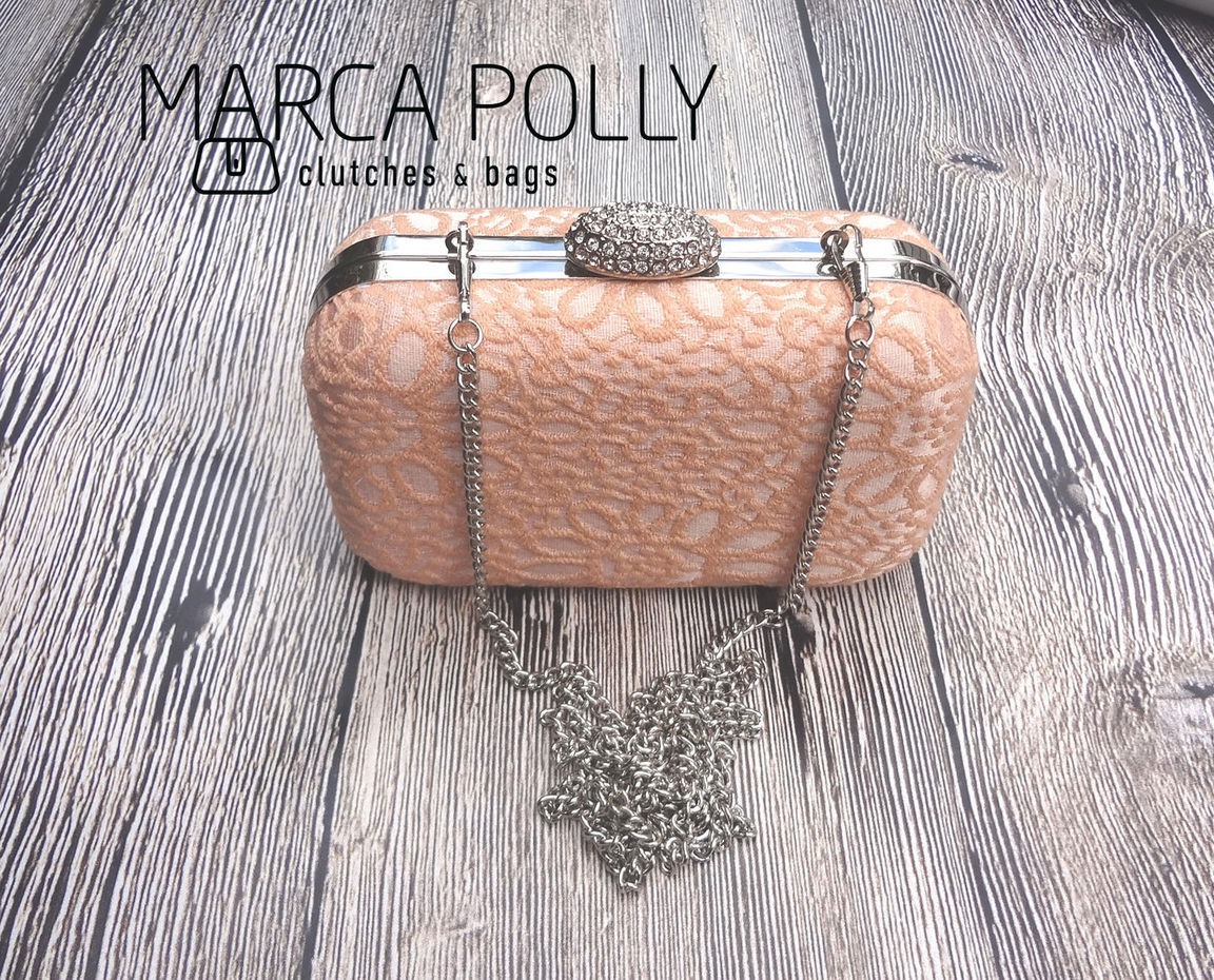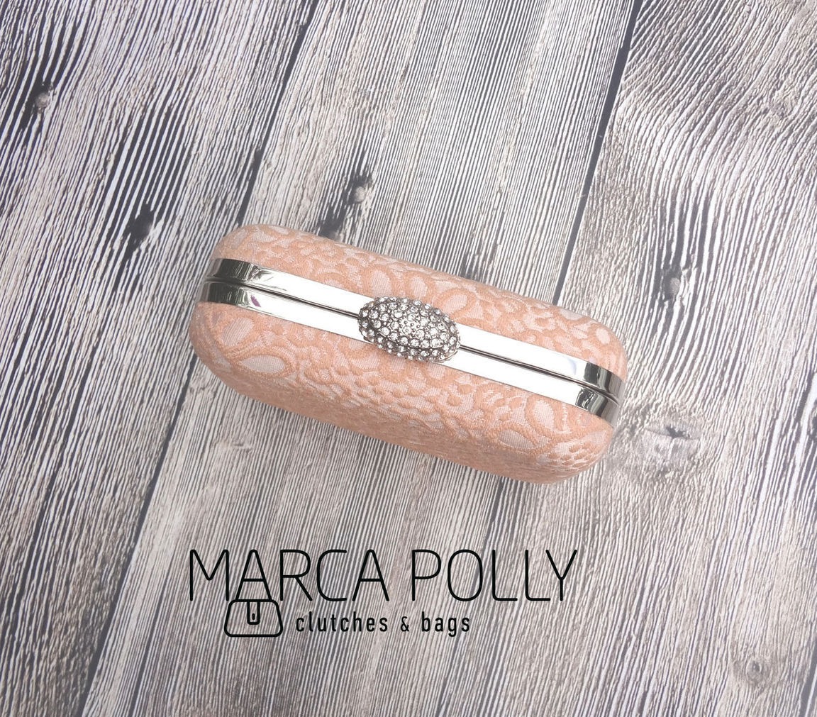 Очень красивый, нежный клатч для невест и не только... Клатч обтянут шикарным жаккардовым шелком бежево-персикового цвета с пудровой ноткой. Лицевая сторона с легким атласным благородным блеском.