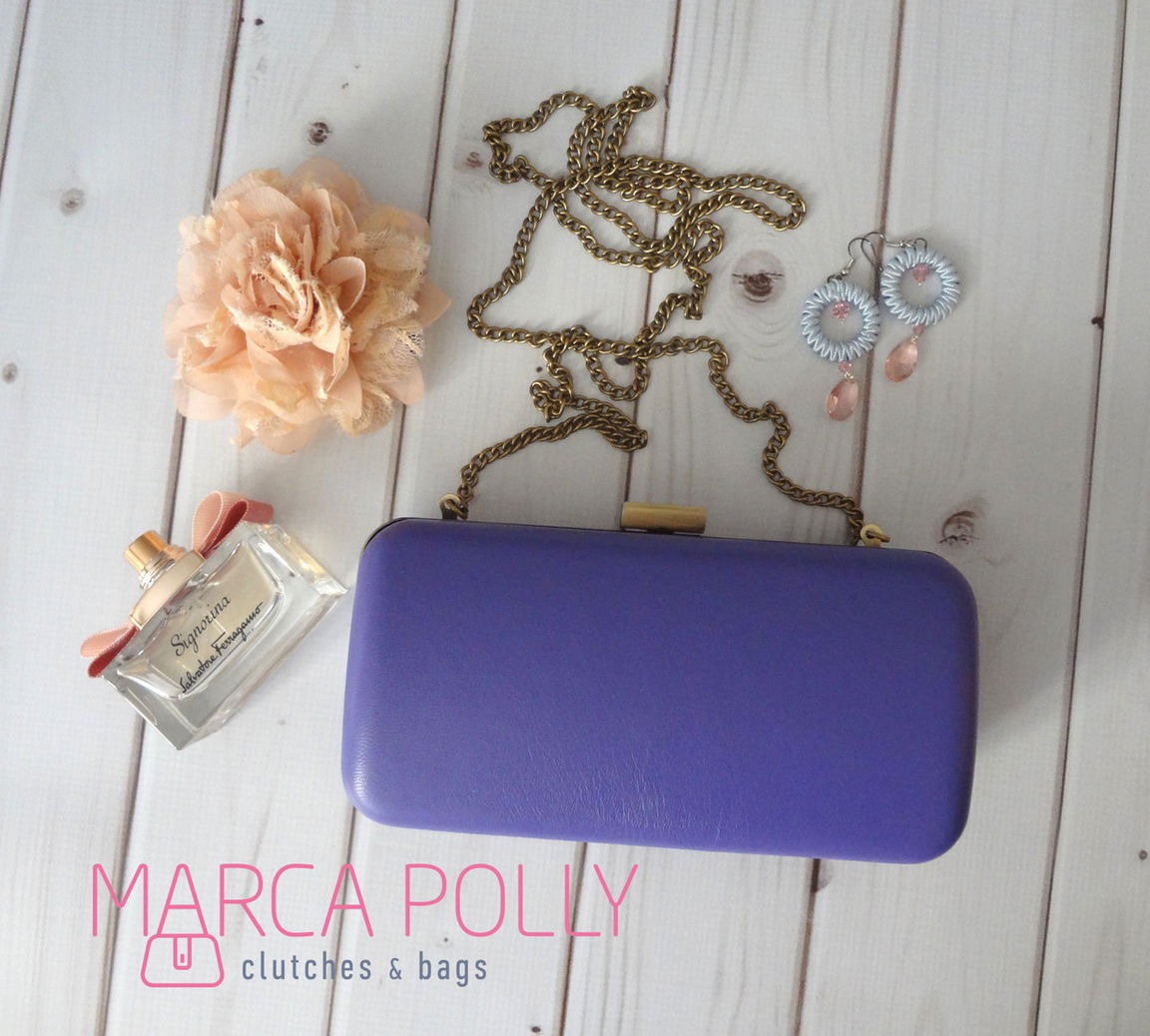 Клатч, обтянутый натуральной итальянской кожей фиолетового оттенка. Бронзовая фурнитура делает клатч изысканным и необычным.