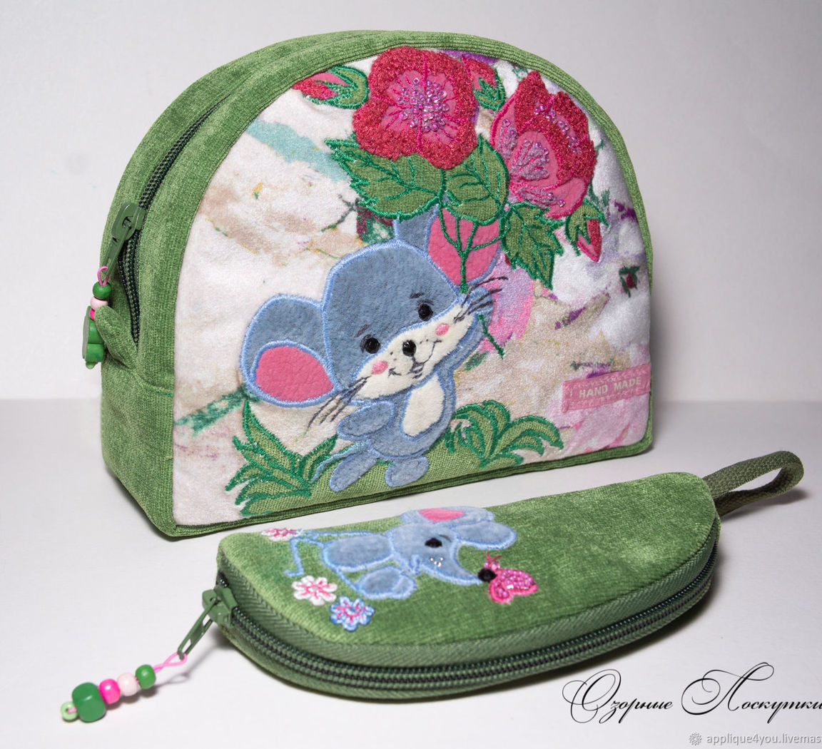 новогодний подарок, зелёный, Новый год, подарок на новый год, органайзер, сумка, розовый, подарок маме, подарок девушке, подарок женщине, подарок подруге, Мышка, подарок на любой случай, косметичка, подарок учителю, апликация, текстильная косметичка, подарок 2020, новогодний подарок 2020, крыса символ 2020