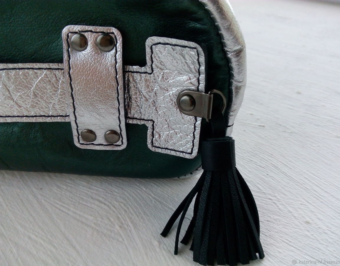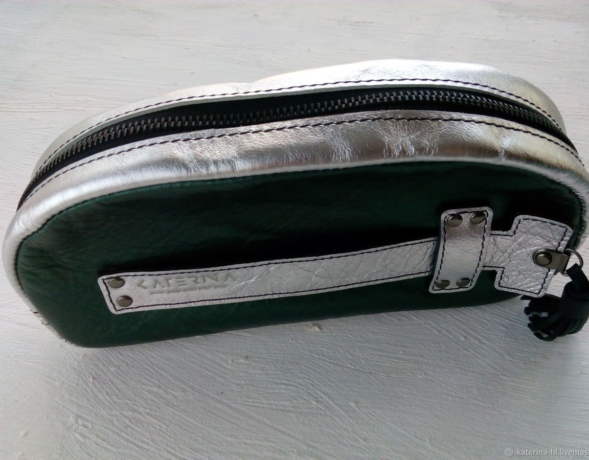 комбинированный, изумрудный цвет, косметичка, клатч, косметичка для девушки, клатч из кожи, серебряный цвет