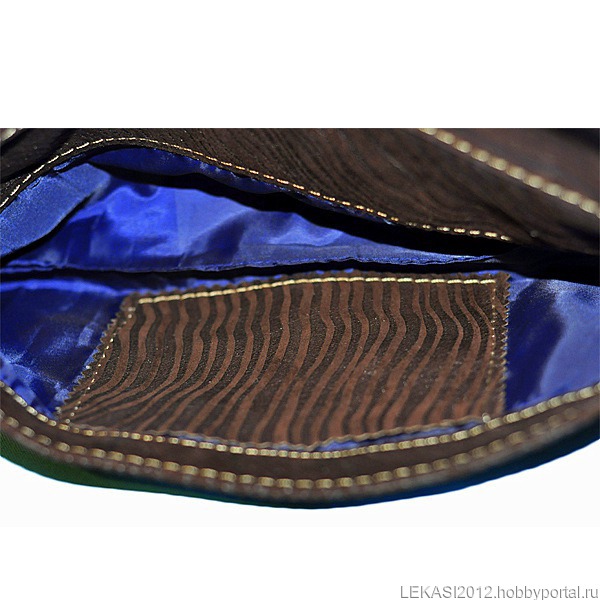 Имеет одно отделение и кожаный карман: 13 х 9 см.