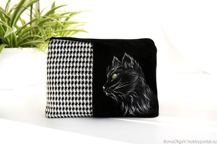 Стильная косметичка на молнии "Кошка" ;