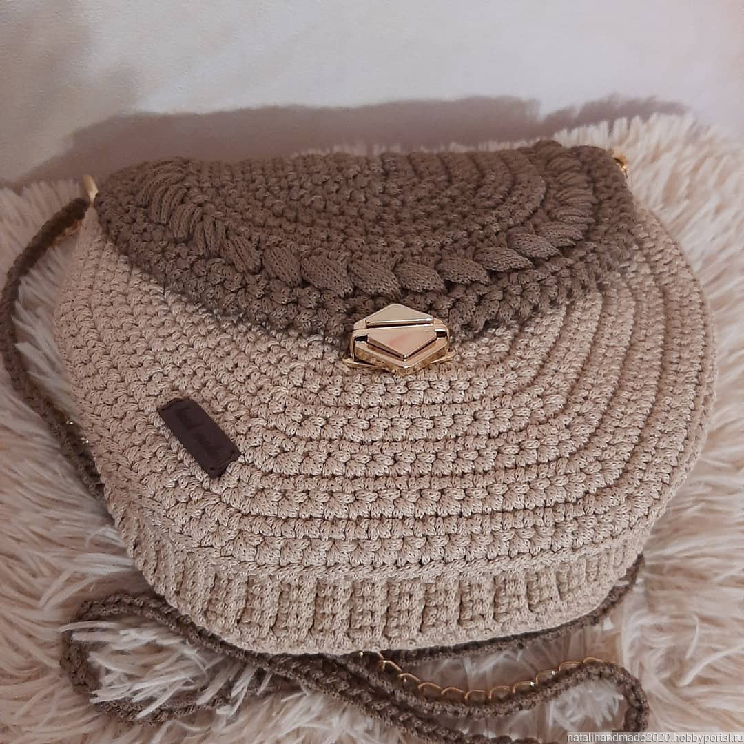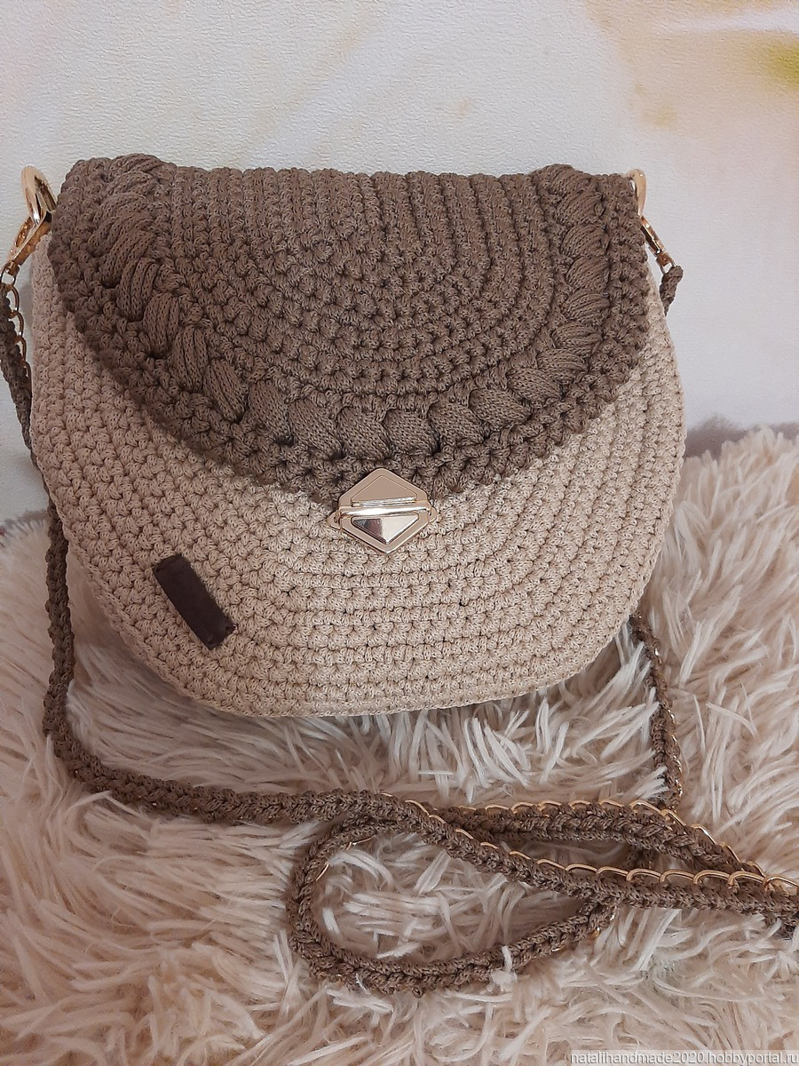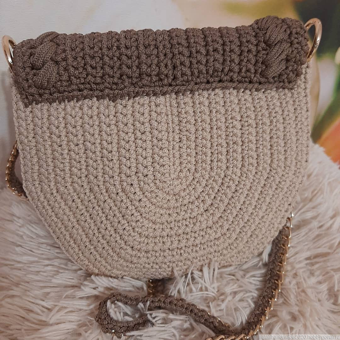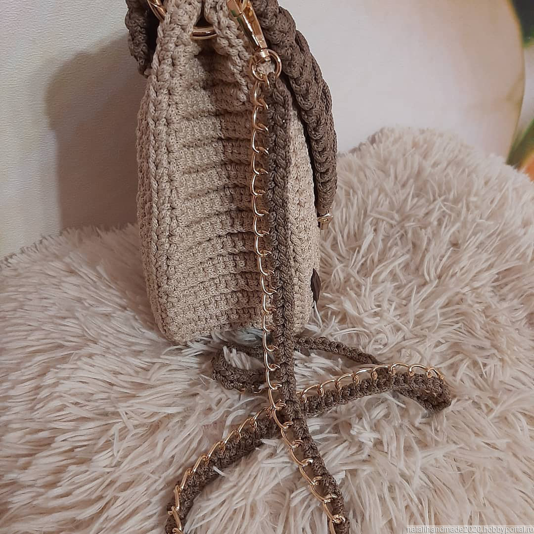 Сумочка связана крючком из полиэфирного шнура, замочек,кольца,цепочка-металл золотистого цвета.
