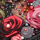 Яркая и нарядная. Женственная и необычная. Букет роз благородных оттенков на черном фоне.