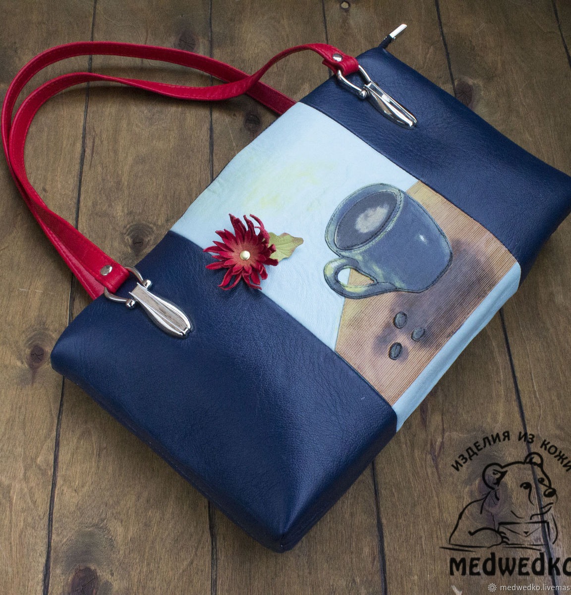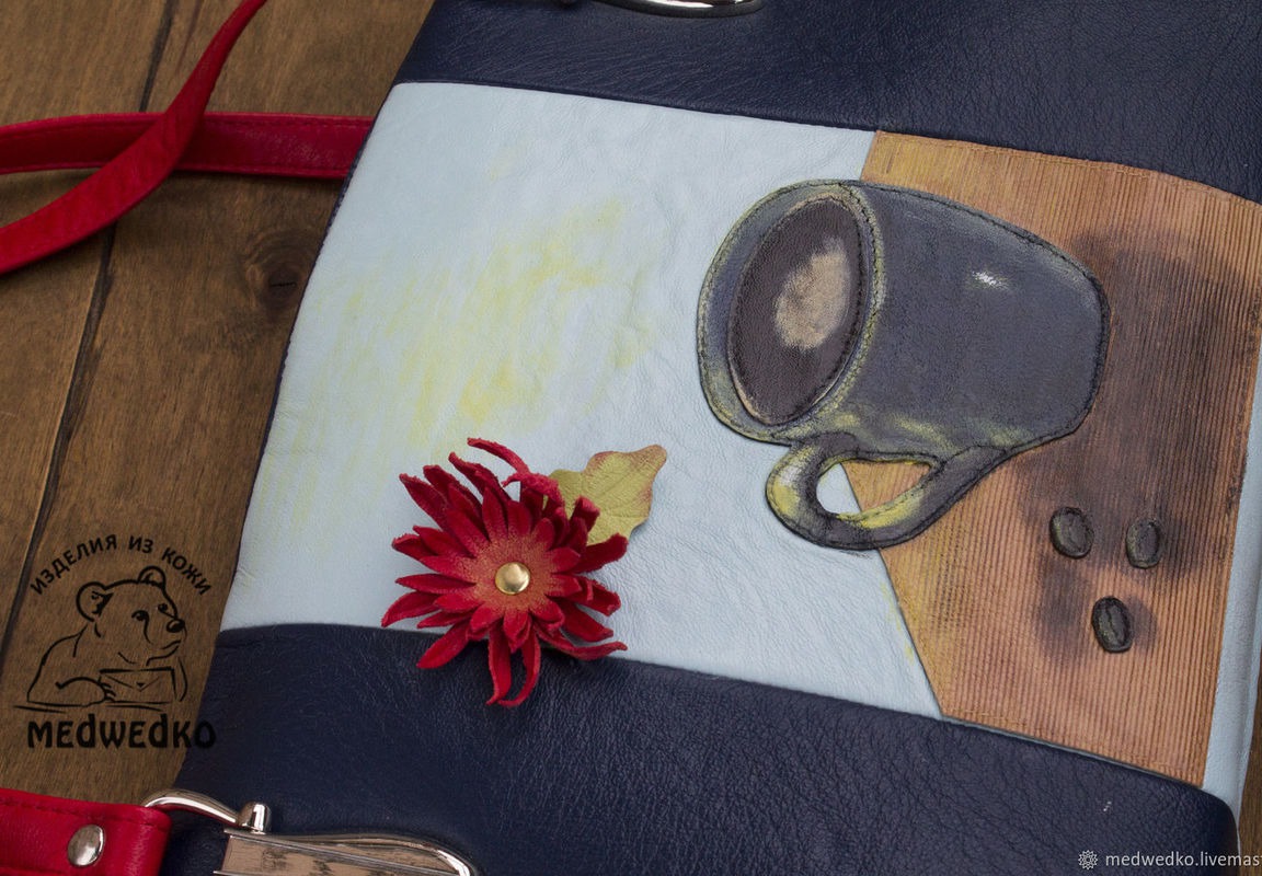 подарок девушке, сумка женская, темно-синий, кофе, кожаная сумка, сумка из кожи, сумка с аппликацией, стильная сумка, купить сумочку, красивая сумка, сумки из натуральной кожи, сумки ручной работы, чашечка кофе, женские сумки из кожи, модные сумки, купить женскую сумку, купить кожаную сумку, сумка кожаная женская, натуральные сумки, сумки женские кожаные