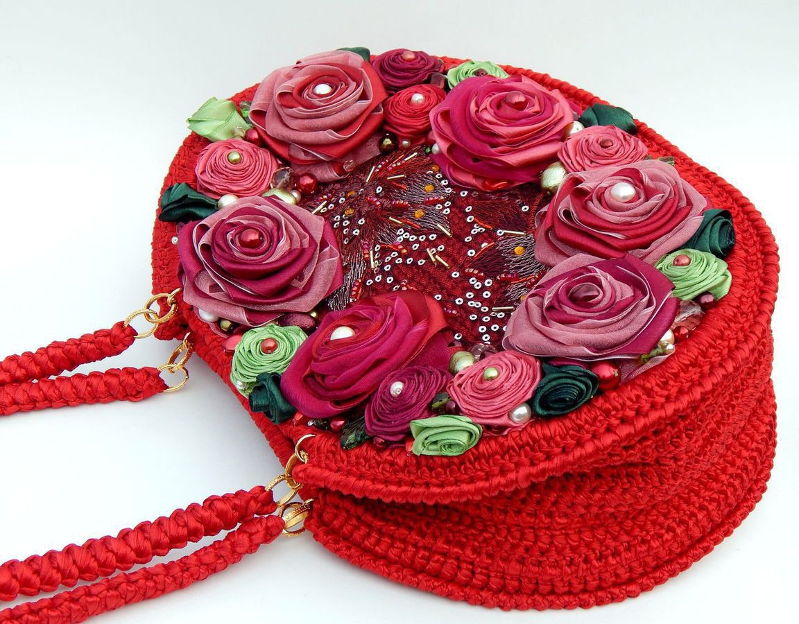 сумочка, сумка, купить сумку, вязаная сумка, нарядная сумка, сумочка из атласных лент