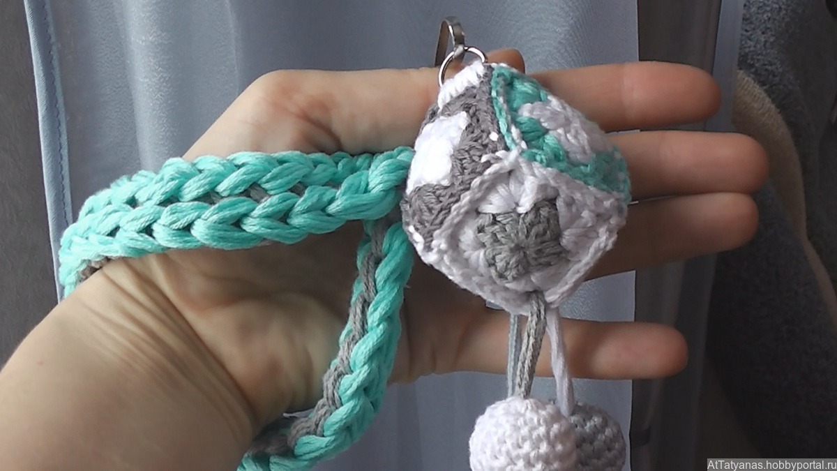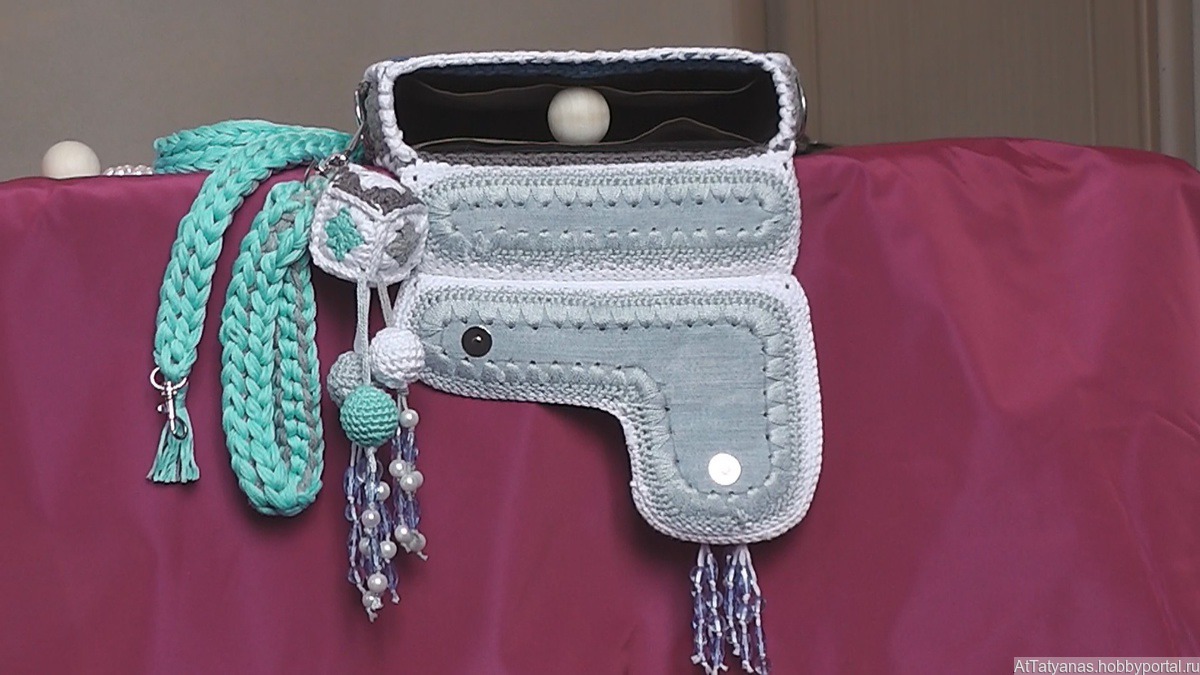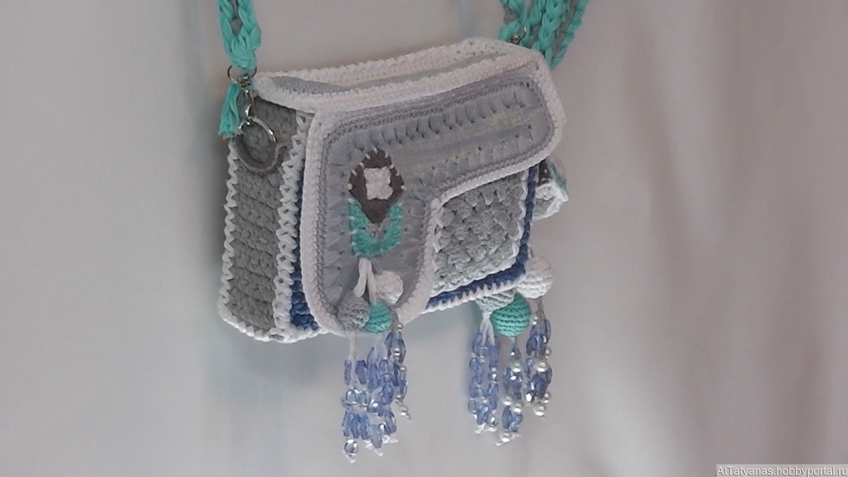 Декорирован Клатч вязаным кубом с бусинами, который при желании можно снять.