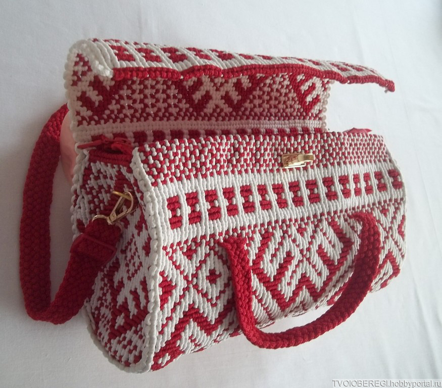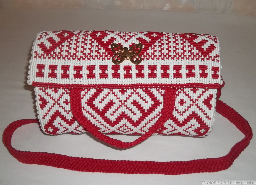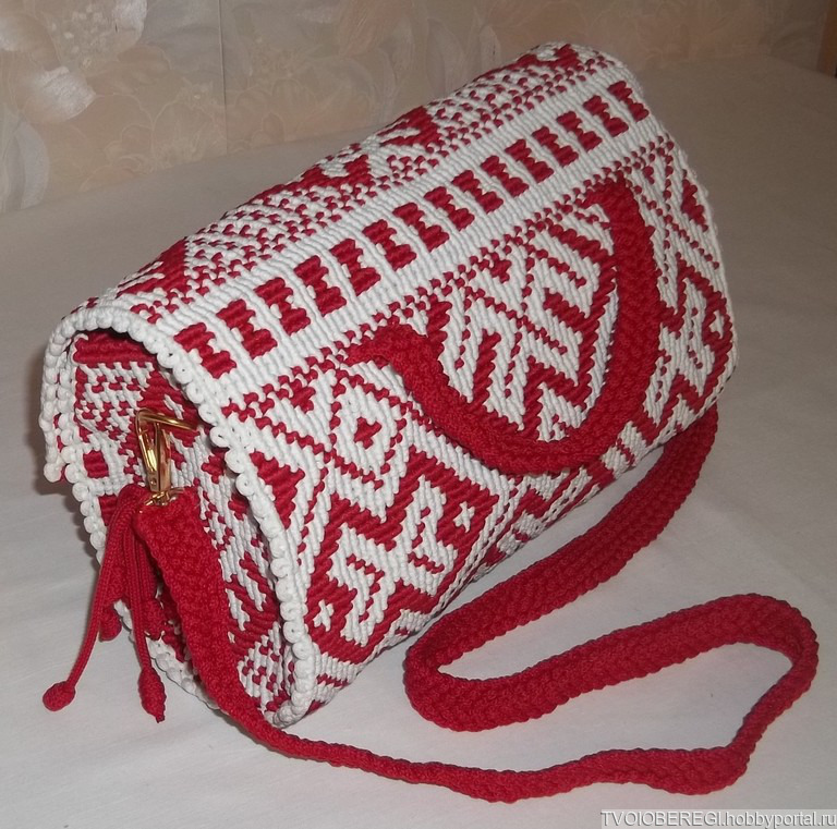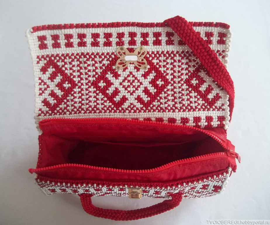 Небольшая дамская сумочка в традиционных для русского орнамента-оберега красно-белых тонах выглядит ярко, по летнему весело и нарядно.