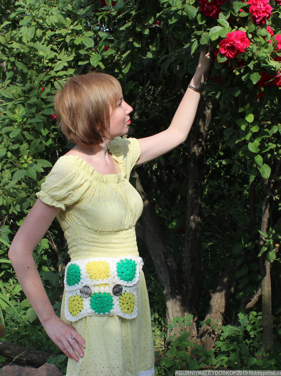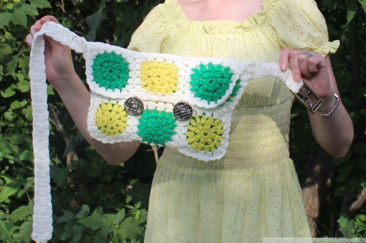 Сумка на талию ручной работы. Оригинальный дизайн, удобство в использовании. Связана крючком, состав пряжи акрил 100%,полиэстер. Ручная стирка,сушка на ровной поверхности. Спереди застежка на две больших декоративных пуговицы, крепится на талии с помощью пояса с застежкой, регулируется. Можно связать на заказ,в другом цвете и размере. срок исполнения до 2-х недель.