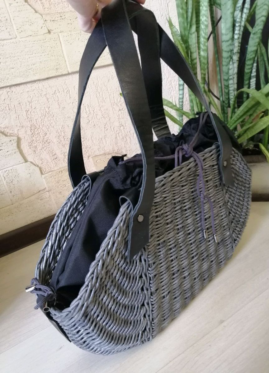 Сумка сплетена из бумажной лозы, обработана грунтовкой для прочности и лаком акриловым.