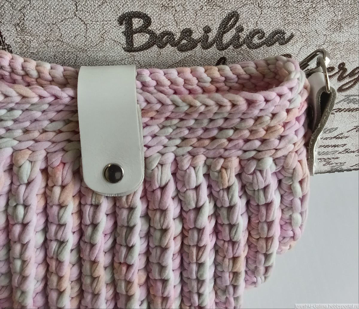 Сумочка связана из трикотажной пряжи, фурнитура натуральная кожа, с подкладом.