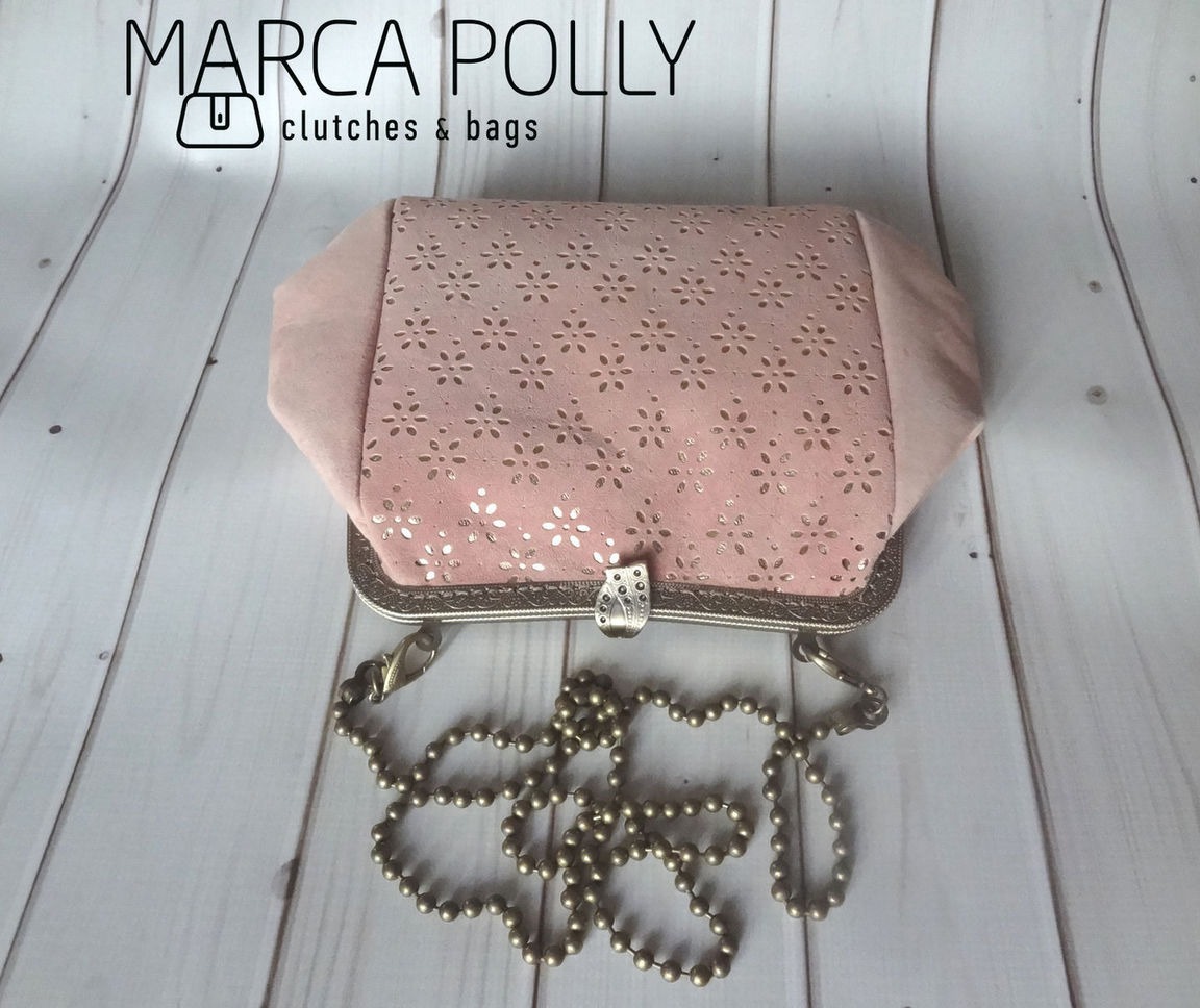 Сумка с фермуаром сшитая вручную. Центр сумки выполнен из натуральной замши с перфорацией, под которой замша с золотым напылением, что создает невероятный эффект. Боковинки выполнены из натуральной замши оттенка "пыльная роза" в тон замши с перфорацией. Получилось невероятно красиво, эффектно и нежно. Внутри подклад из льна с рисунком. В комплекте цепочка длинной 120 см. Сумка небольшая, но вместительная.