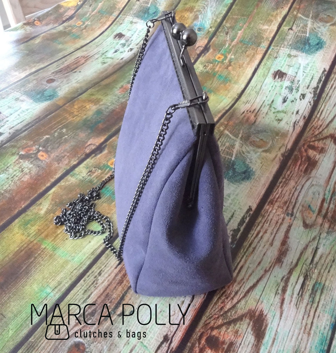 Сумка с фермуаром ручной работы. Выполнена из натуральной итальянской замши сложного серо-сиреневого оттенка. Цвет очень красивый, фото не передает. Серый идеальный цвет, он сочетается почти с любыми другими цветами. Он смягчит кричащие цвета и подчеркнет красоту ясных оттенков.
