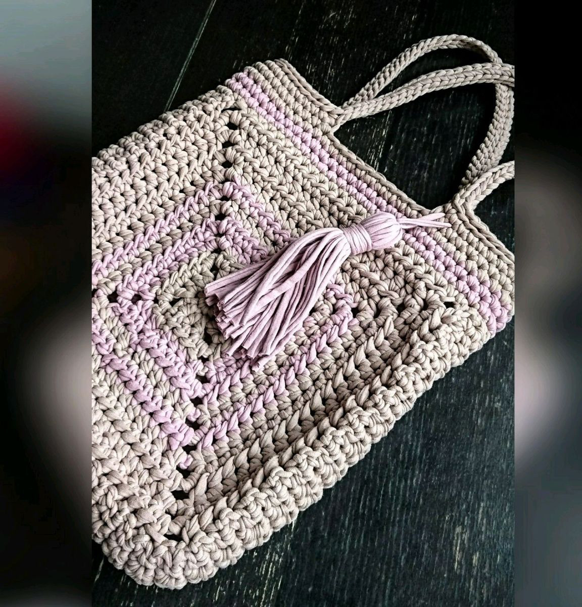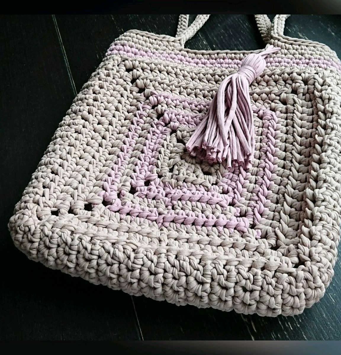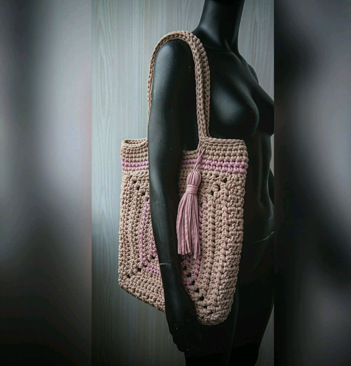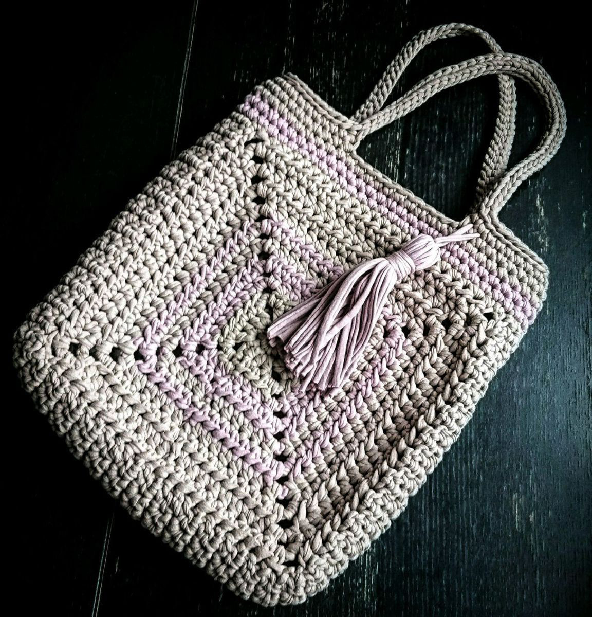 Вместительный шопер,пляжная сумка,отличный вариант повседневной, летней сумки из трикотажной пряжи,сочетание цвета латте и увядшей розы