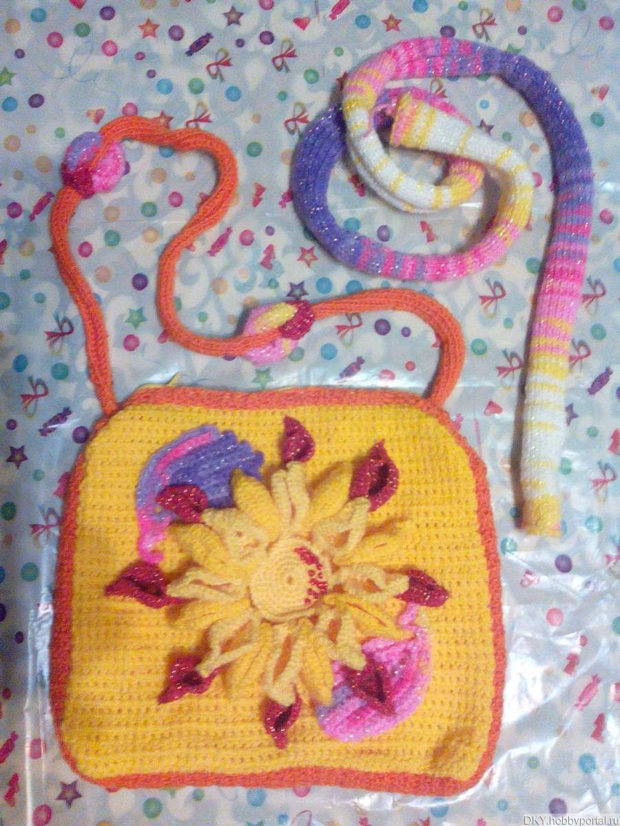 шарфик детский, вязанная сумочка