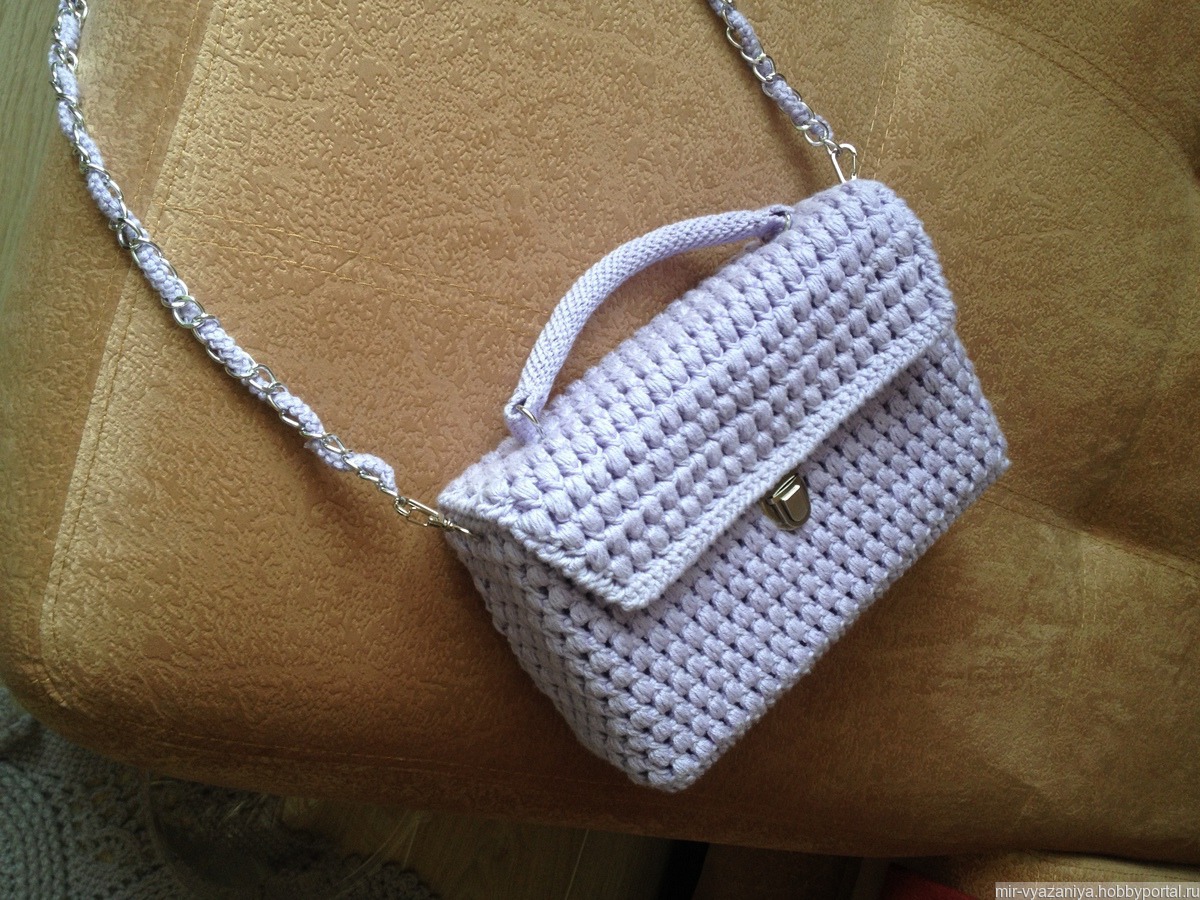 Сумочку можно использовать повседневно. Имеются 2 ручки-короткая витая и длинная. Внутри подклад с карманом. Для жесткости-прокладочный материал. Свяжу в любом цвете.