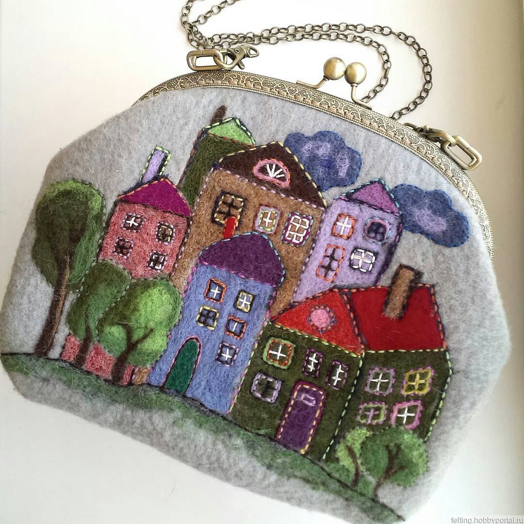 Валяная сумочка с фермуаром. Сваляна из итальянской шерсти, внутри подклад из плотного хлопка с тремя кармашками.